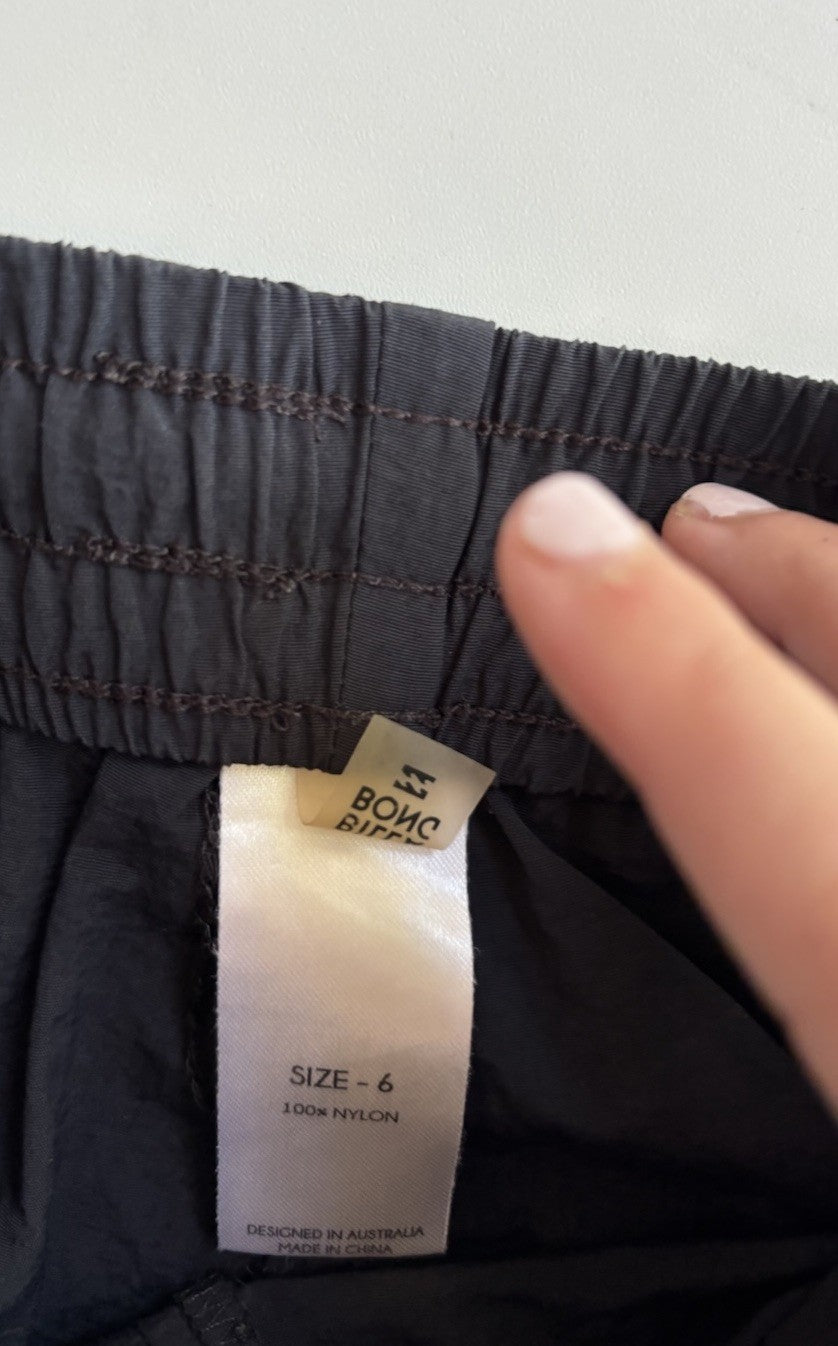 Billabong kids girls size 6 black pink drawstring shorts, VGUC