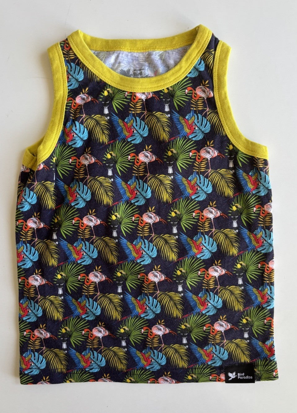 Bird Paradise kids toddler size 2 blue multicoloured birds tank top, VGUC