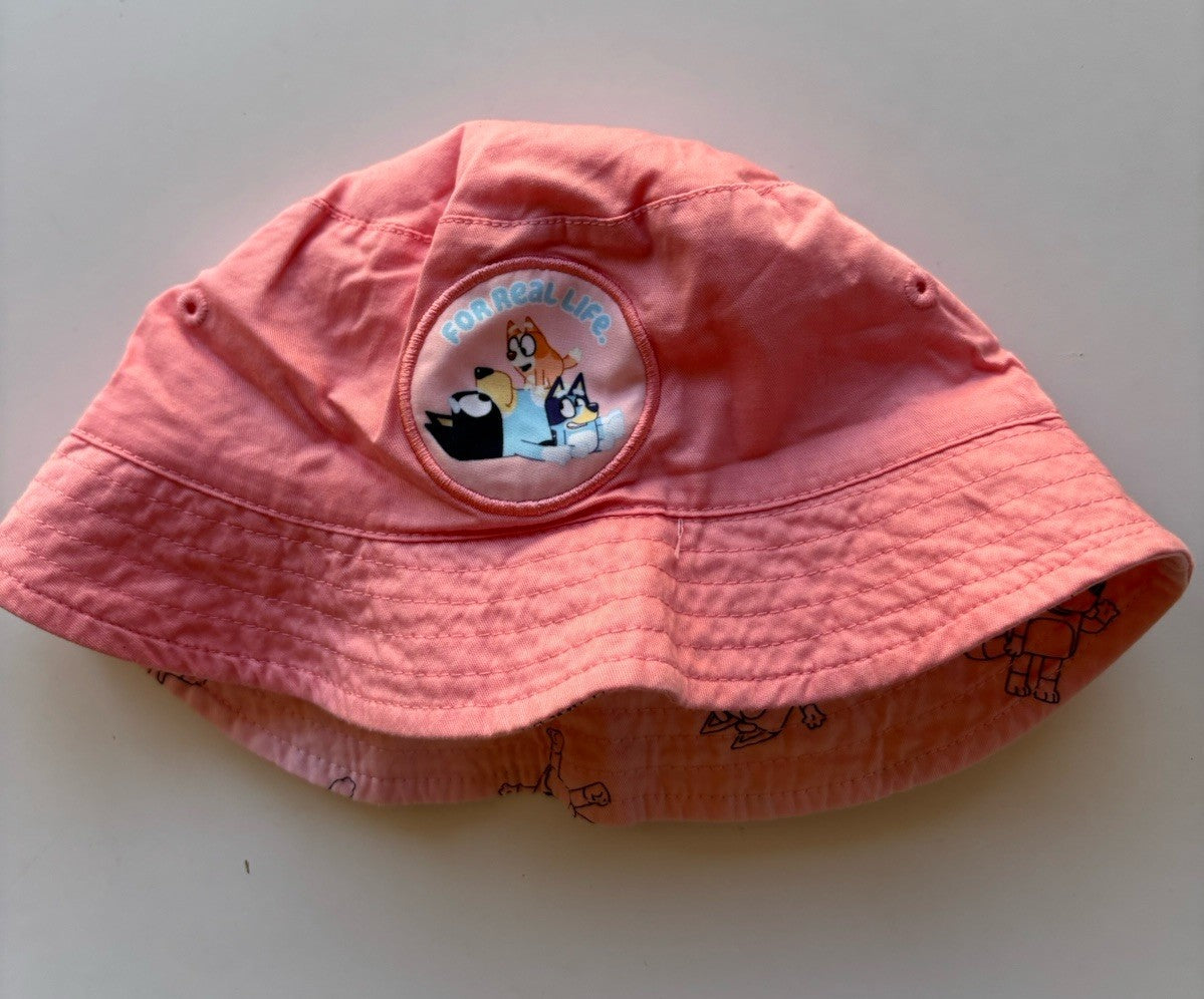 Bluey baby girl size XS pink reversible bucket hat, VGUC