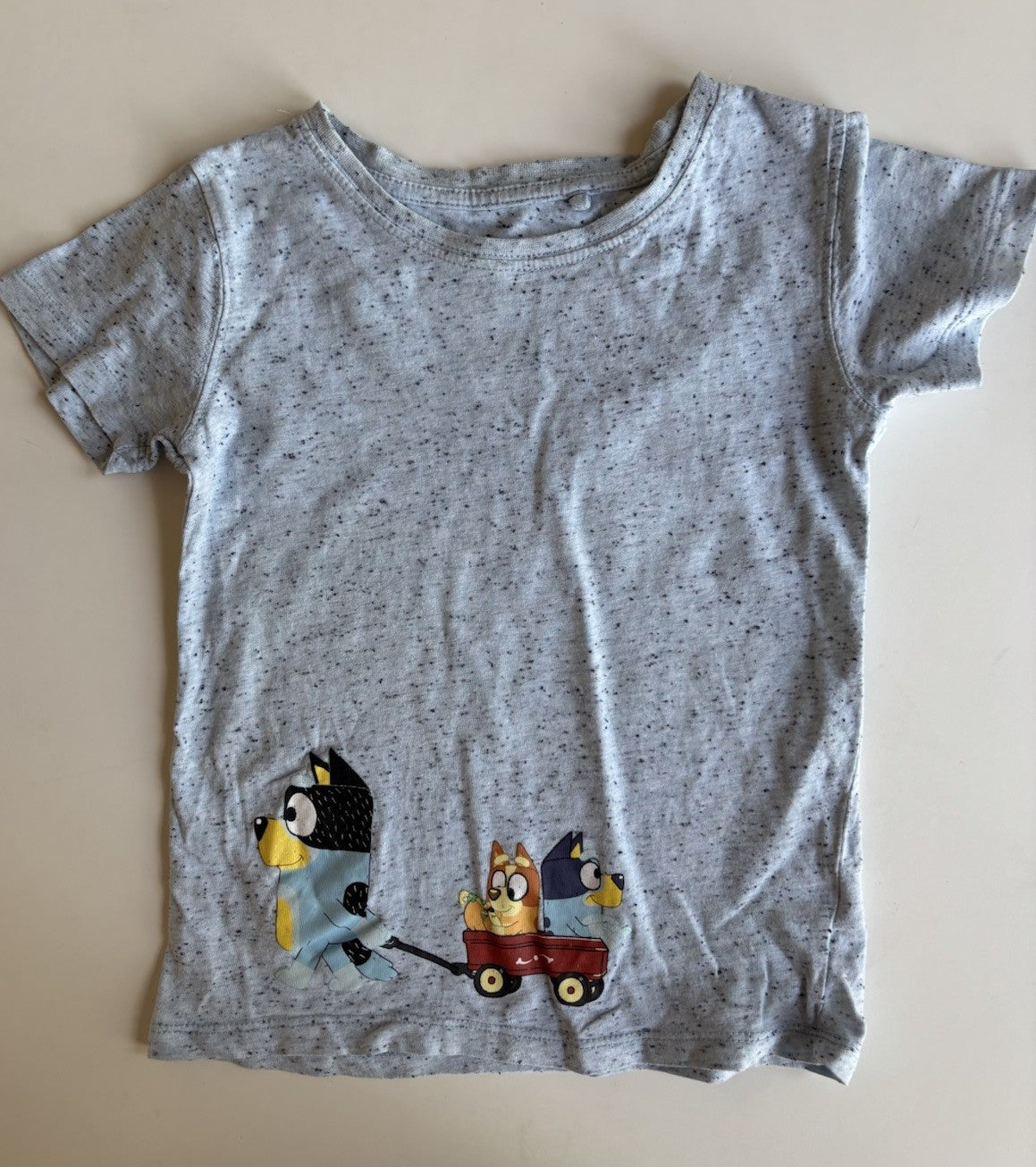 Bluey kids size 5 blue speckled short sleeve t-shirt, VGUC