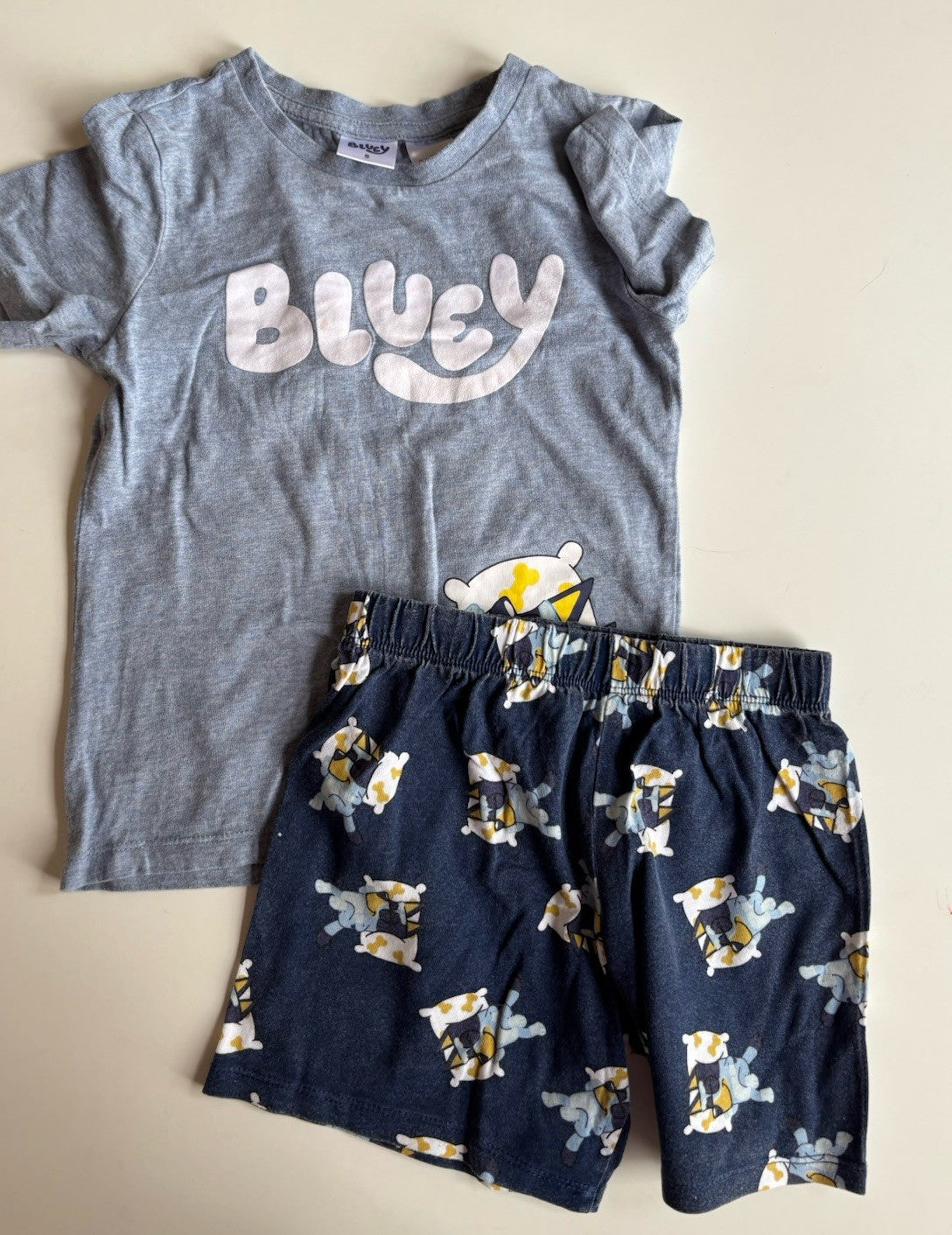 Bluey kids size 5 blue summer PJ set t-shirt shorts, GUC
