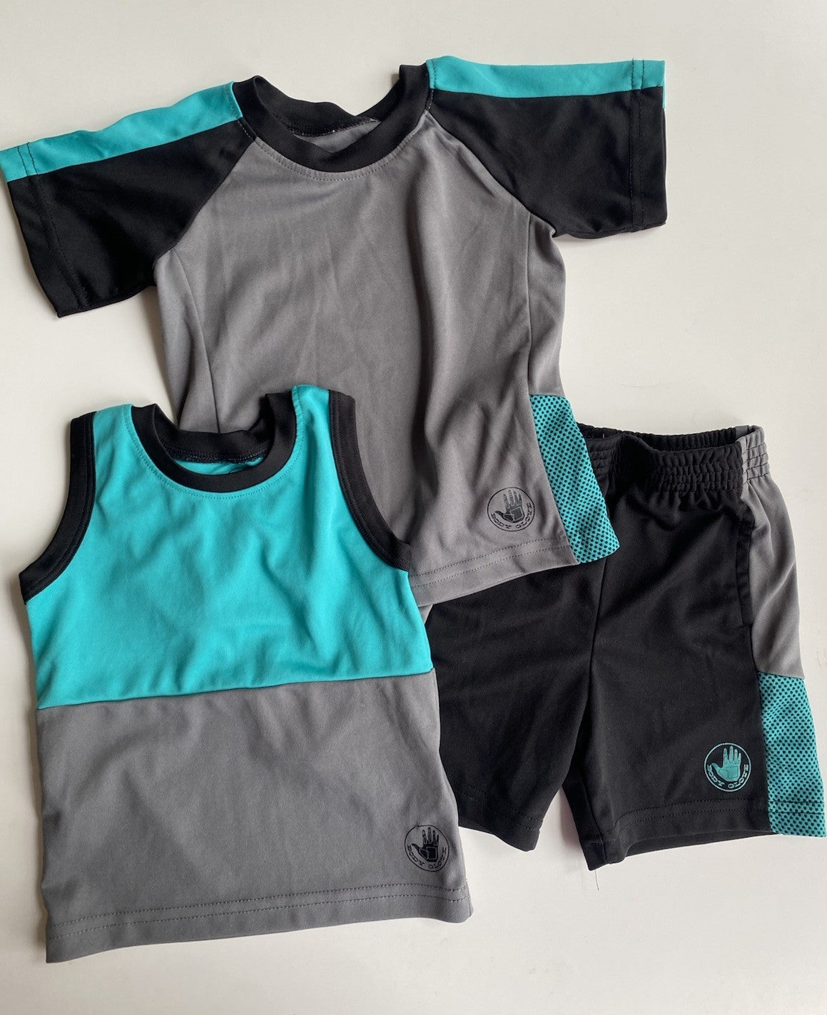 Body Glove baby boy size 9-12 months grey black green bundle tops shorts, VGUC