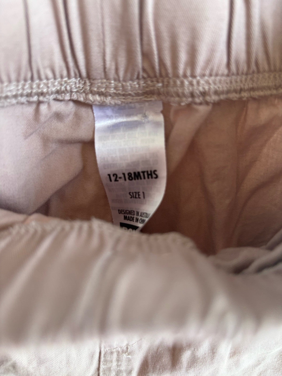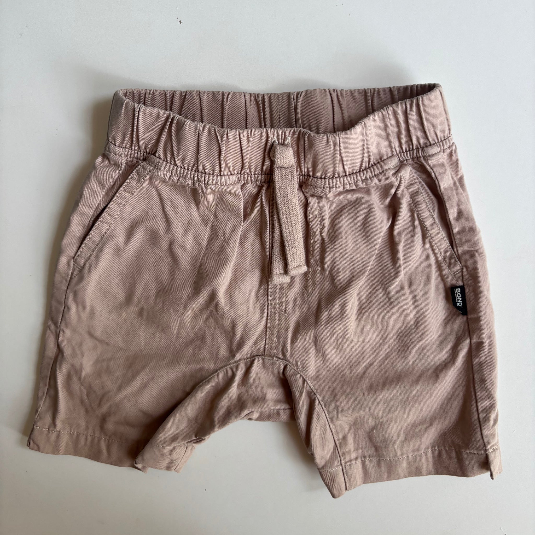 Bonds baby boy size 12-18 months light brown drawstring shorts, VGUC