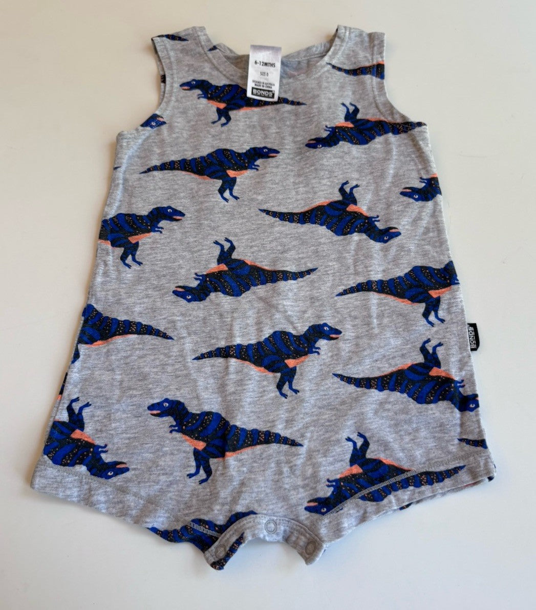 Bonds baby boy size 6-12 months grey blue dinosaur romper one-piece, V