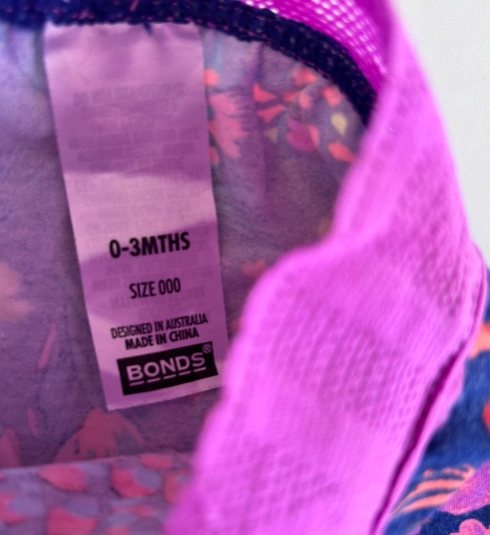 Bonds baby girl size 0-3 months blue purple floral leggings, VGUC