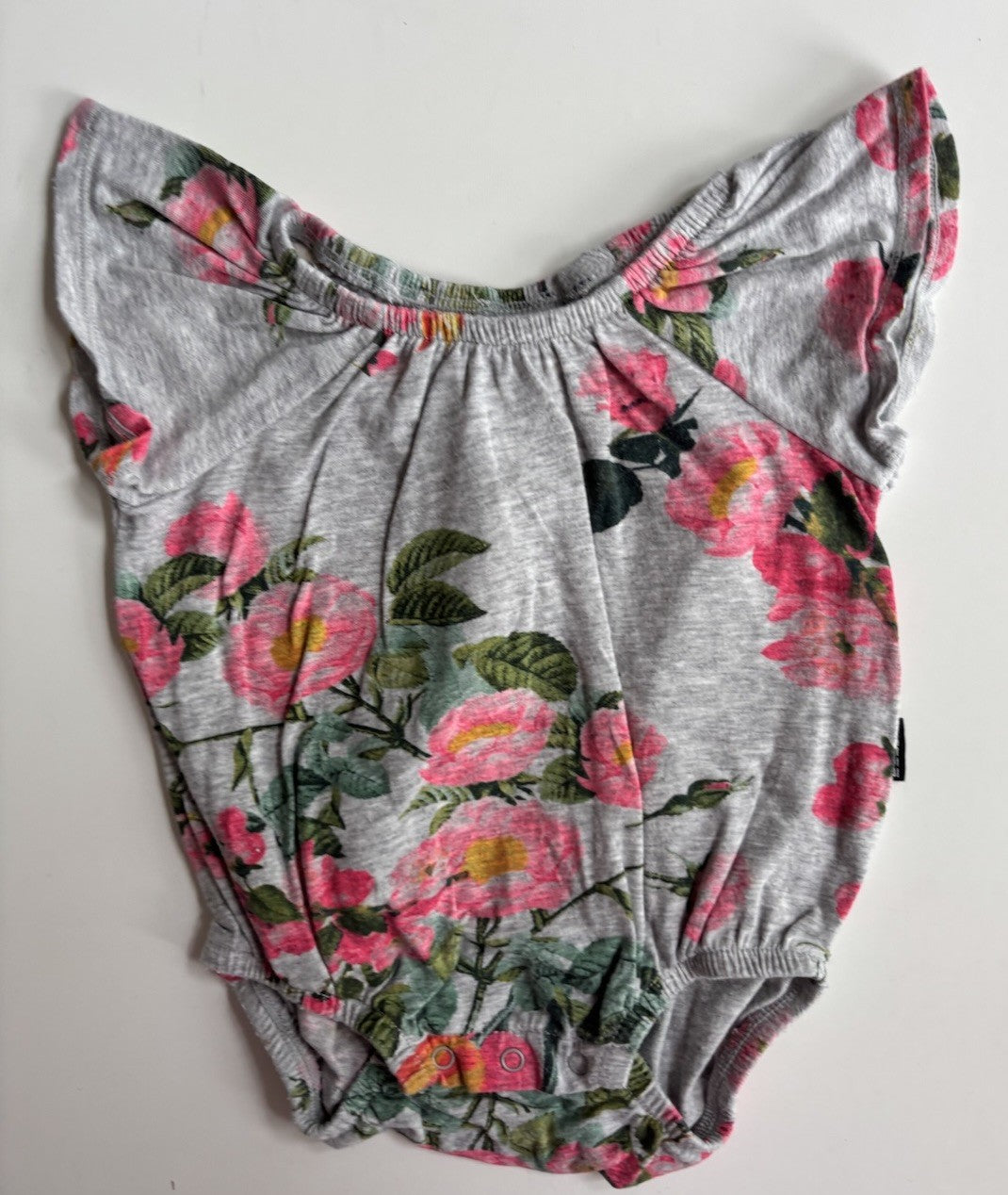 Bonds baby girl size 0-3 months grey pink floral romper, VGUC