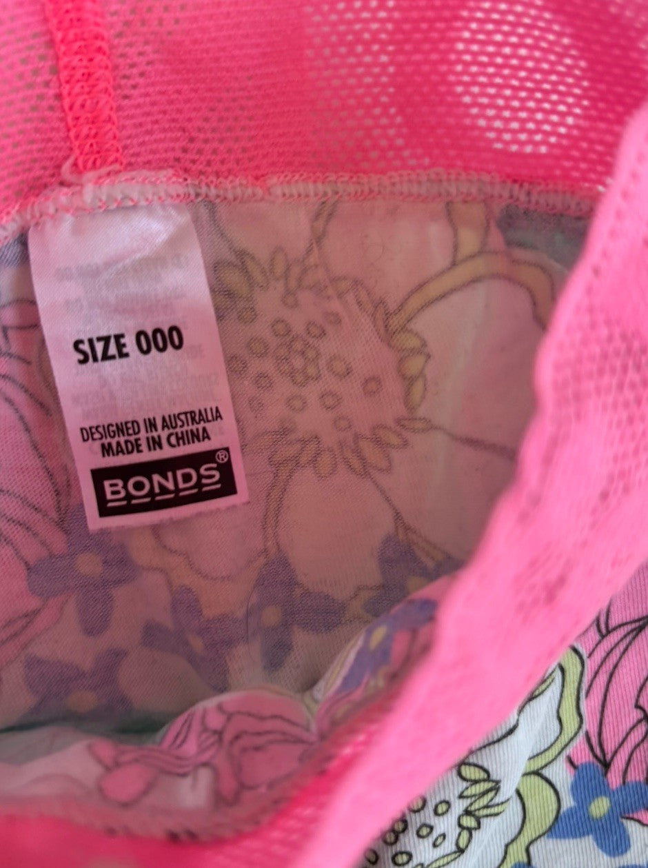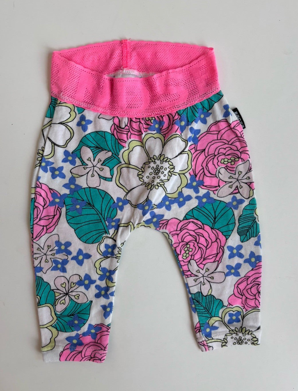 Bonds baby girl size 0-3 months white pink green floral leggings, VGUC