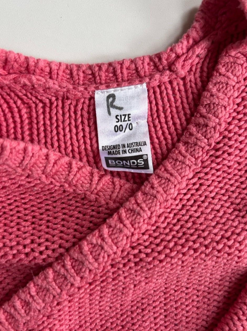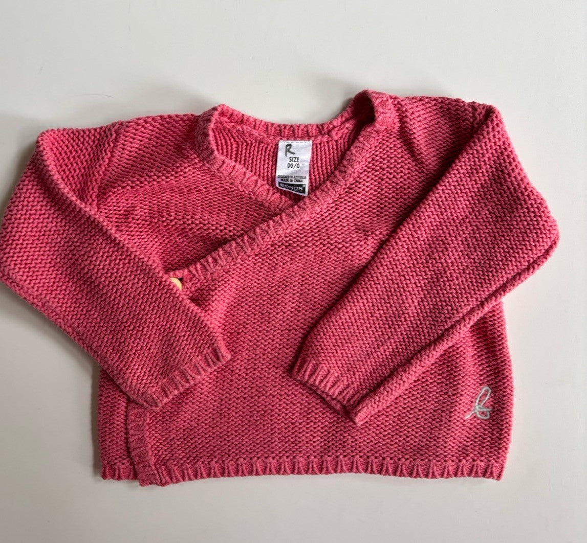 Bonds baby girl size 00-0 pink knit wrap cardigan jumper, VGUC