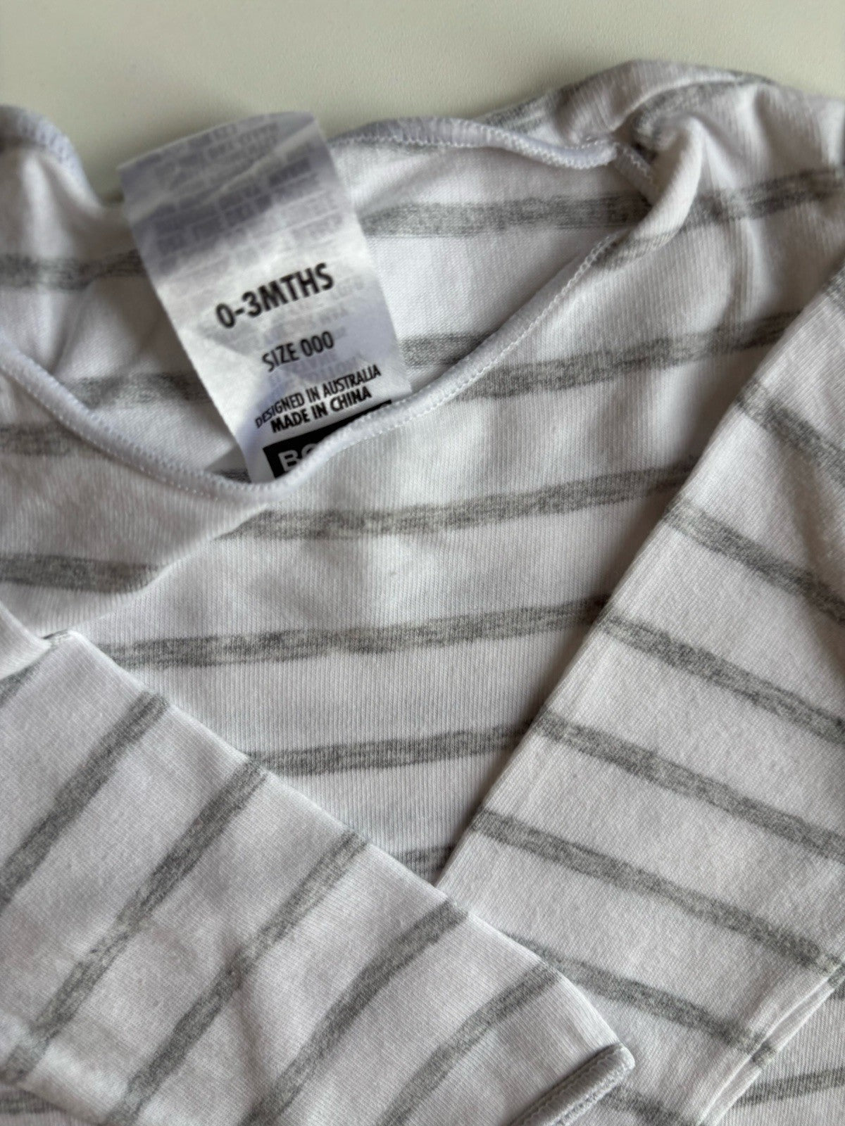 Bonds baby girl size 0-3 months white grey stripe long sleeve bodysuit