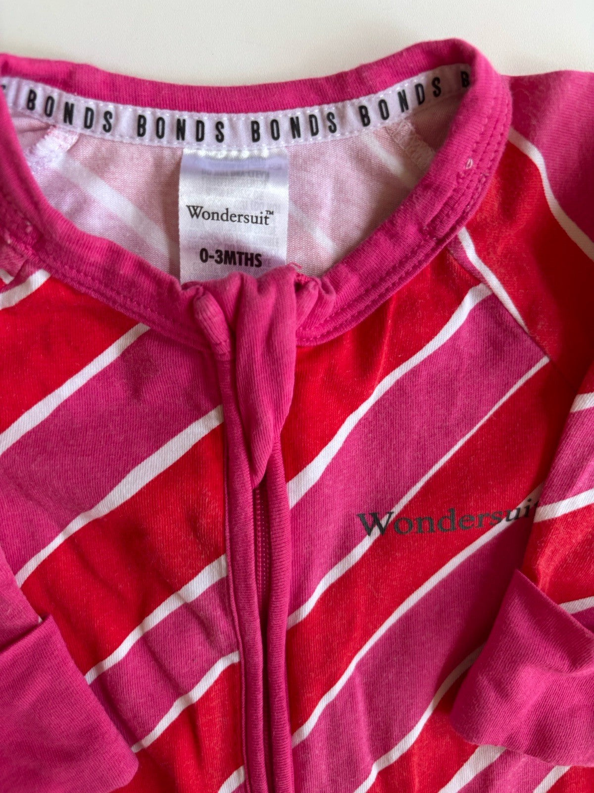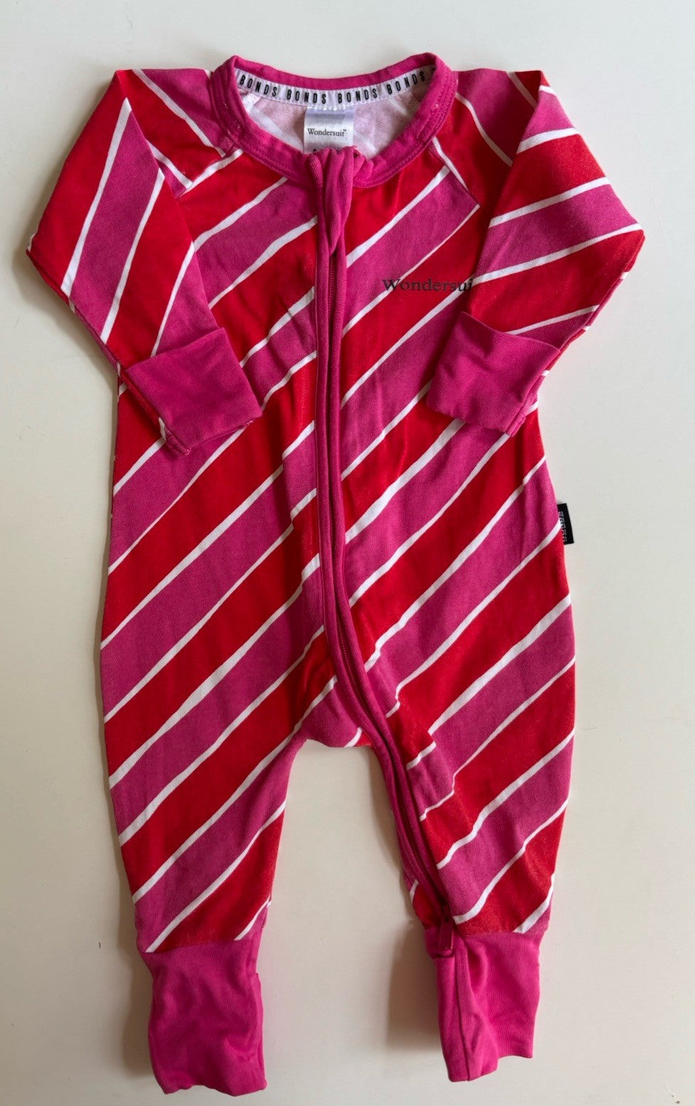 Bonds baby girl size 0-3 months zippy wondersuit pink red stripe VGUC