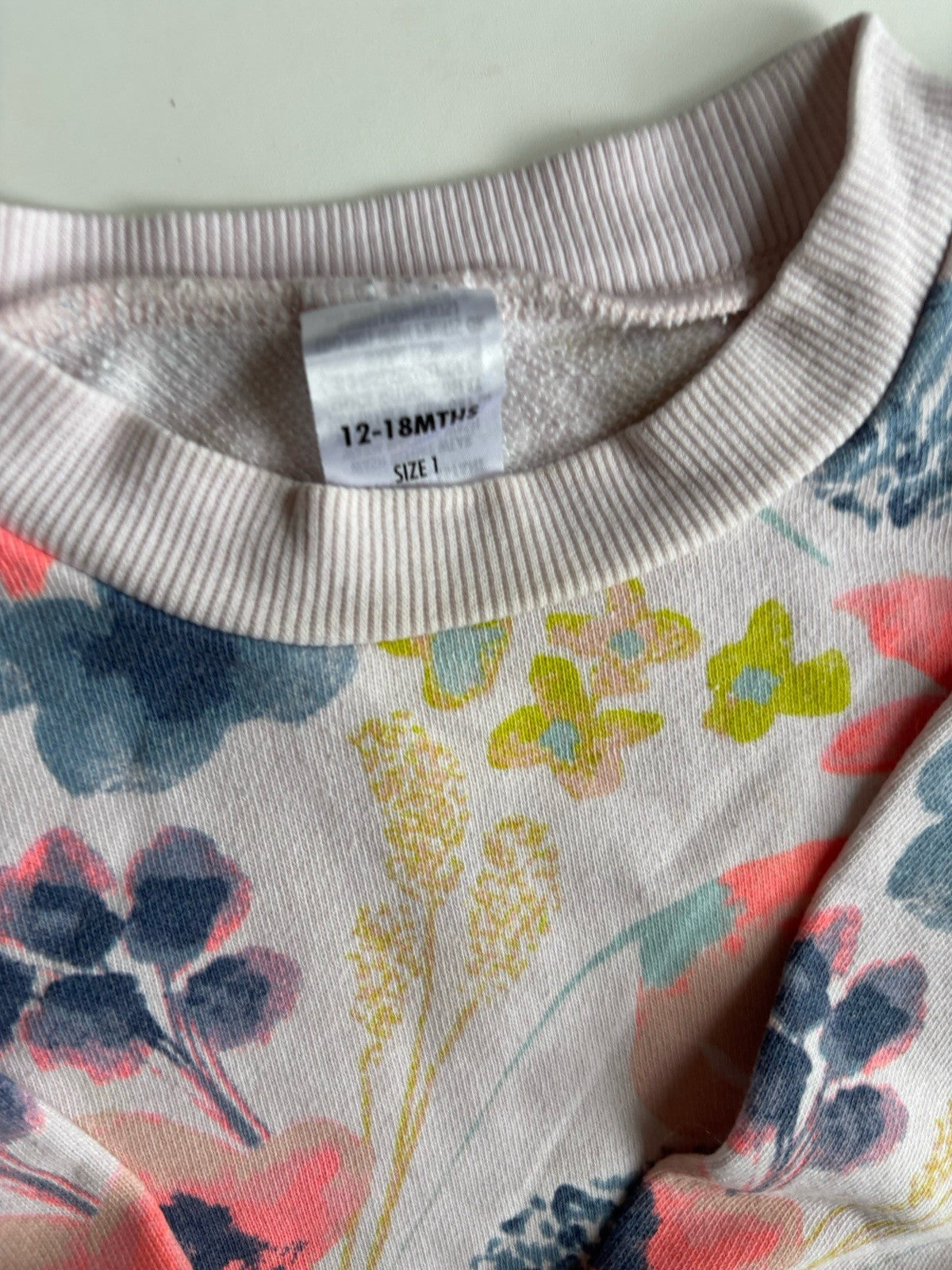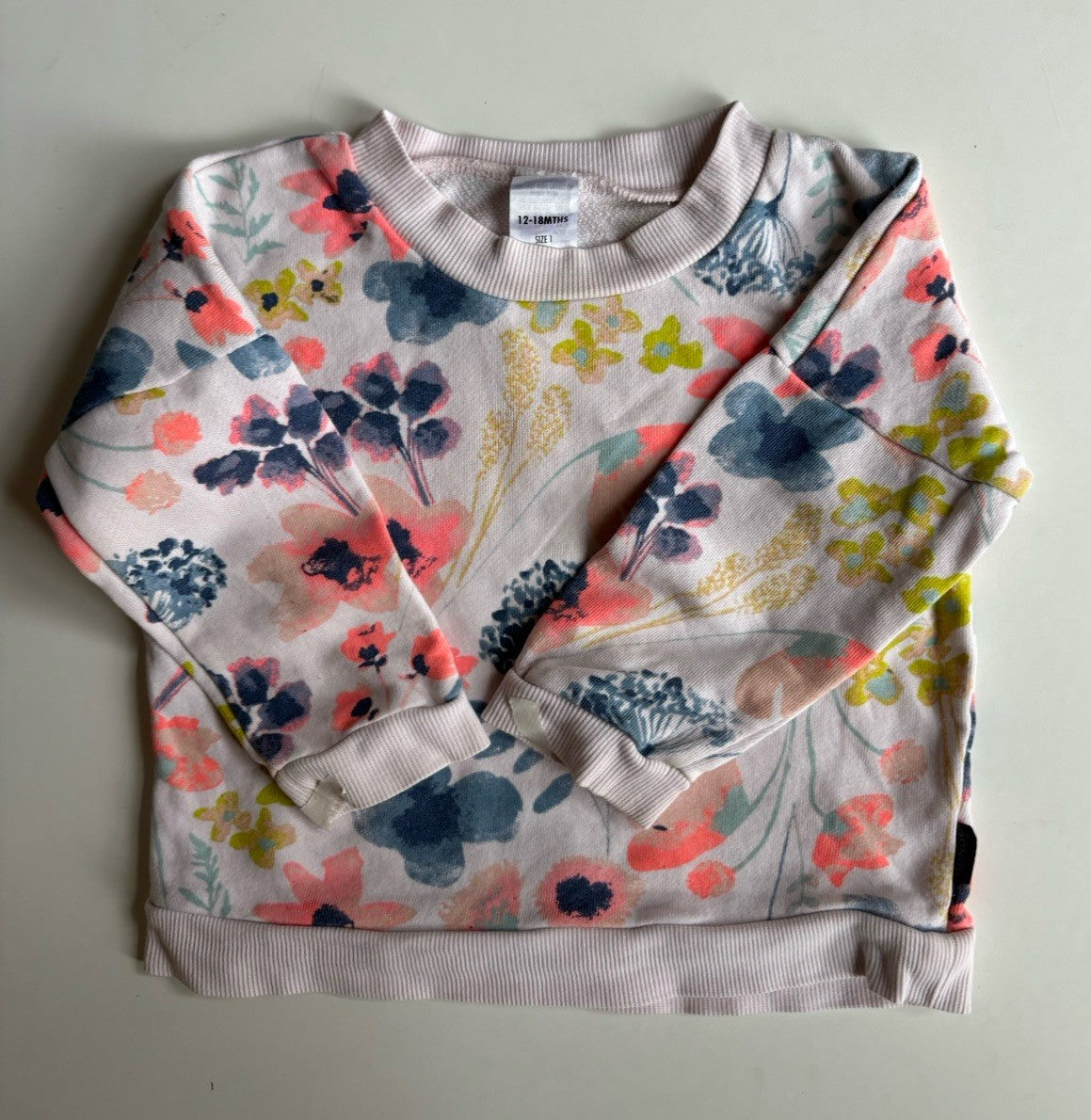 Bonds baby girl size 12-18 months pink floral pullover jumper, VGUC