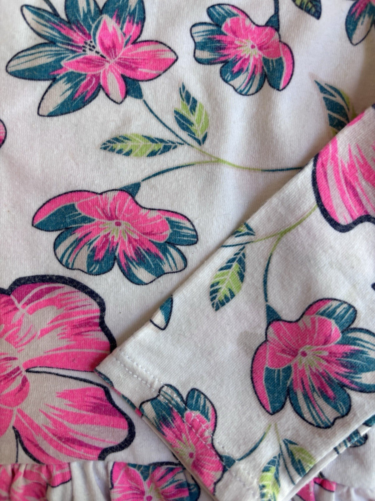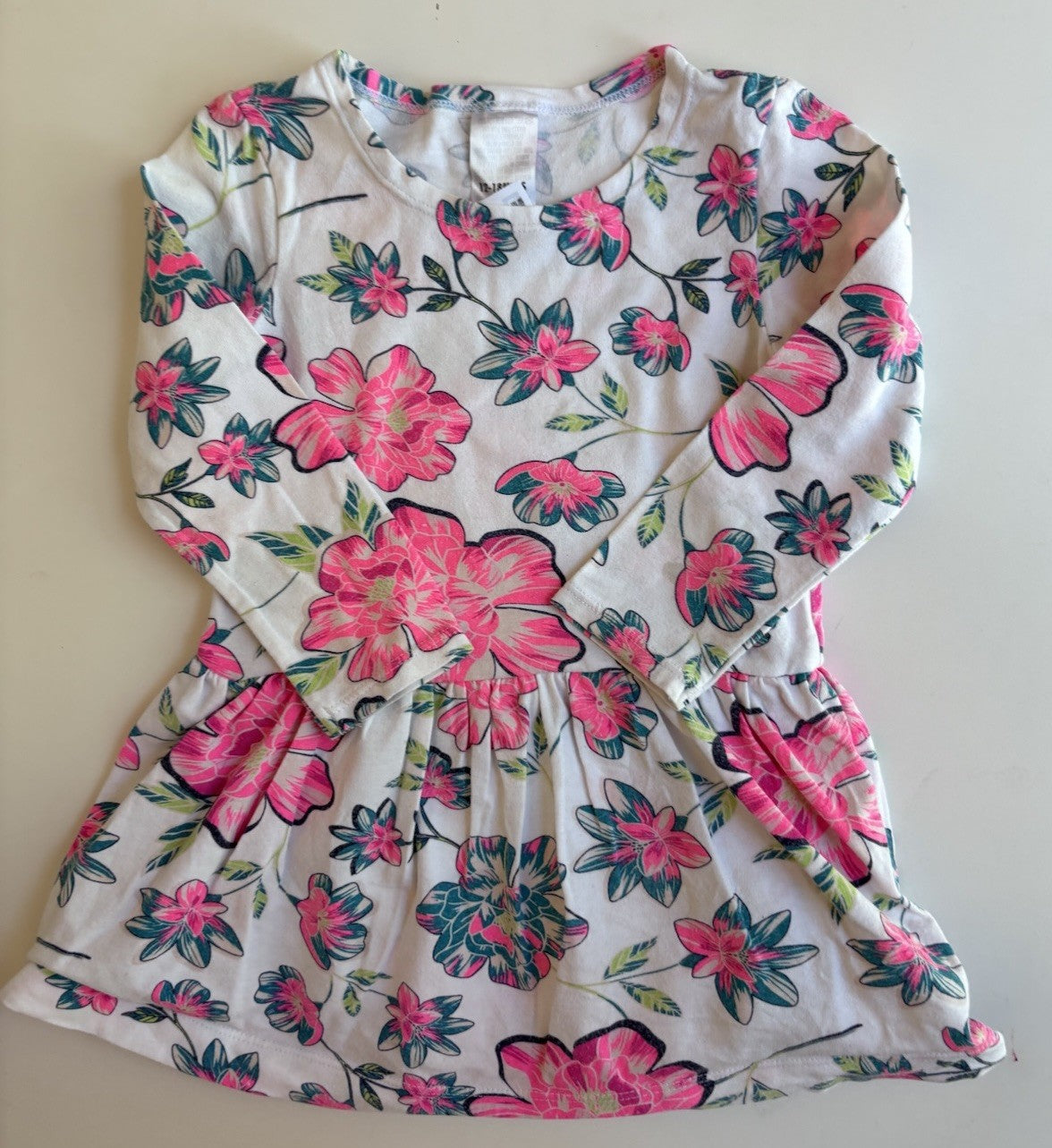 Bonds baby girl size 12-18 months pink white floral long sleeve dress, GUC