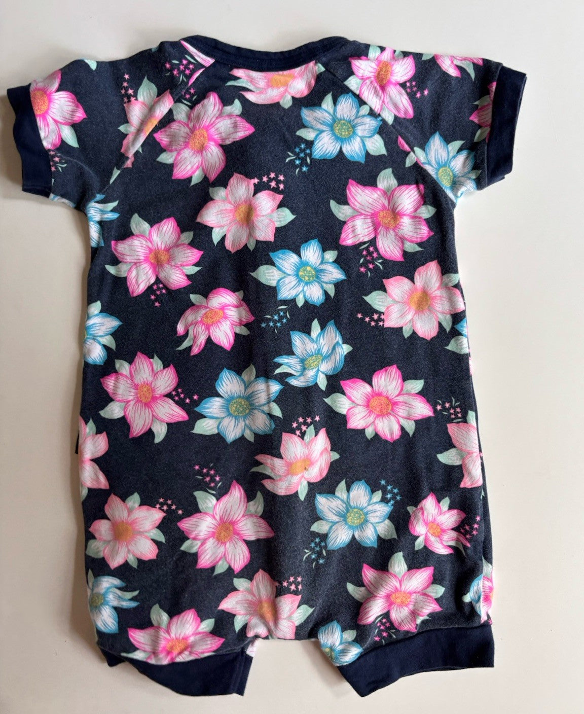 Bonds baby girl size 12-18 months zippy wondersuit romper blue floral, GUC