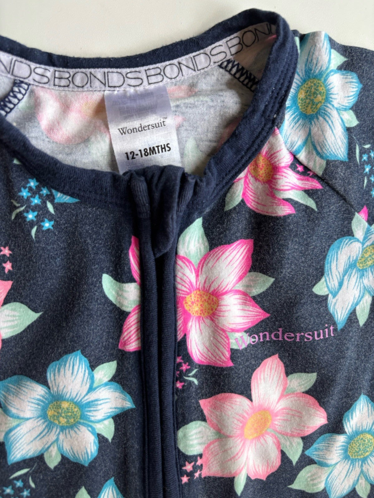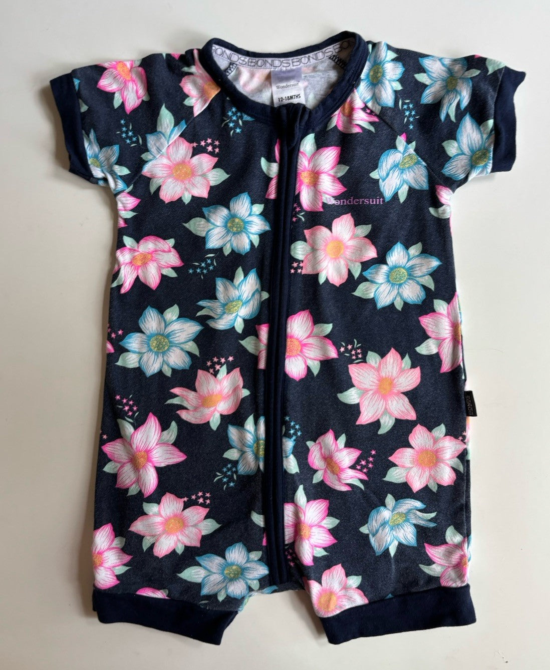 Bonds baby girl size 12-18 months zippy wondersuit romper blue floral,