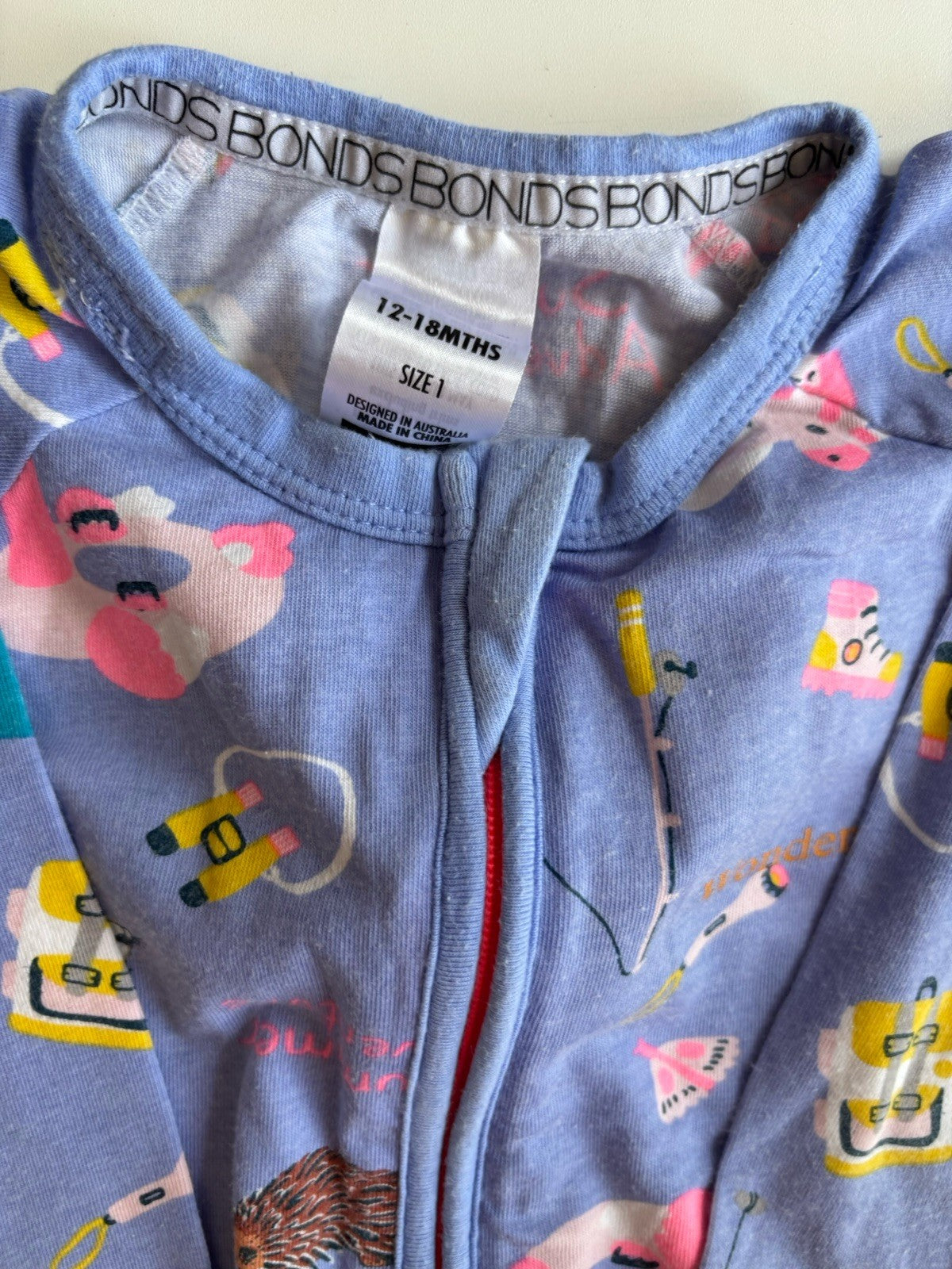 Bonds baby girl size 12-18 months zippy wondersuit summer adventure, VGUC