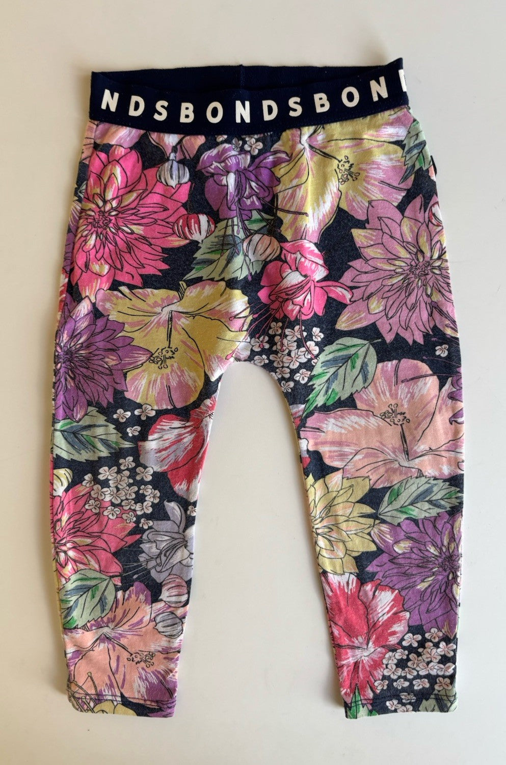 Bonds baby girl size 18-24 months blue pink floral leggings pants, VGUC