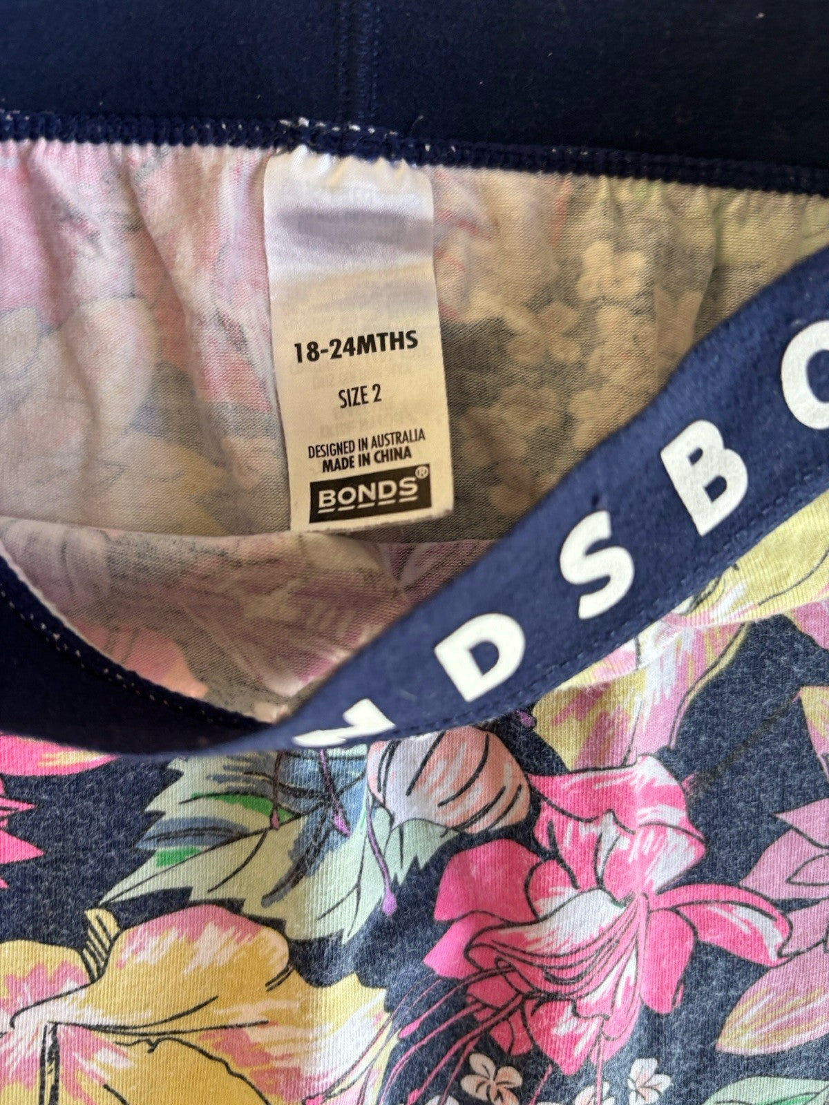 Bonds baby girl size 18-24 months blue pink floral leggings pants, VGU