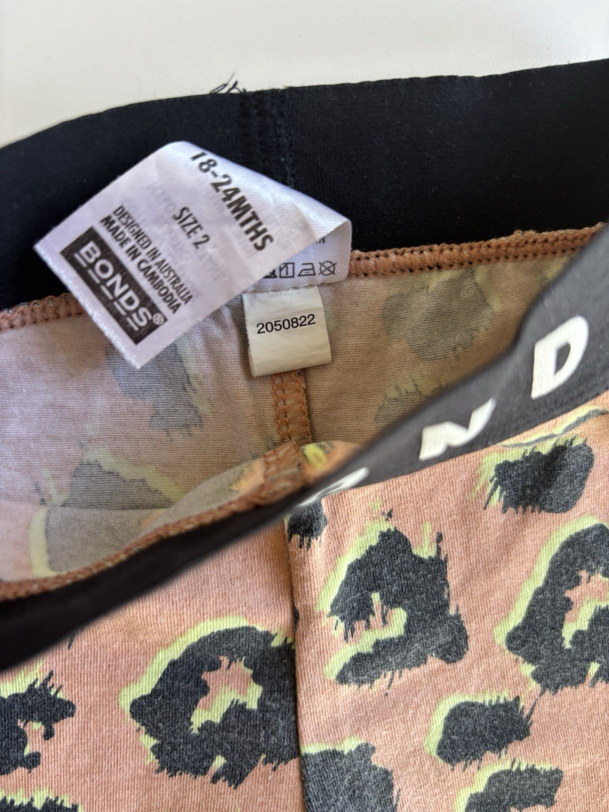 Bonds baby girl size 18-24 months brown black leopard print bike shorts, VGUC