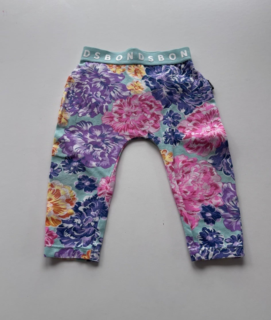 Bonds baby girl size 3-6 months blue colourful floral leggings pants,