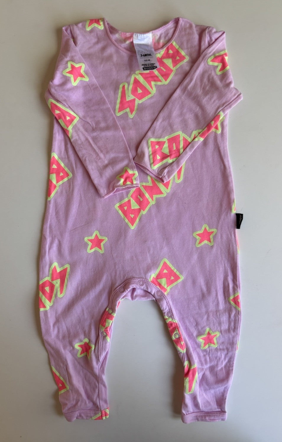 Bonds baby girl size 3-6 months neon pink logo one-piece, VGUC
