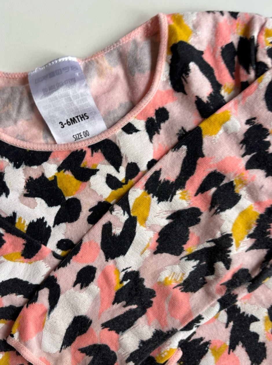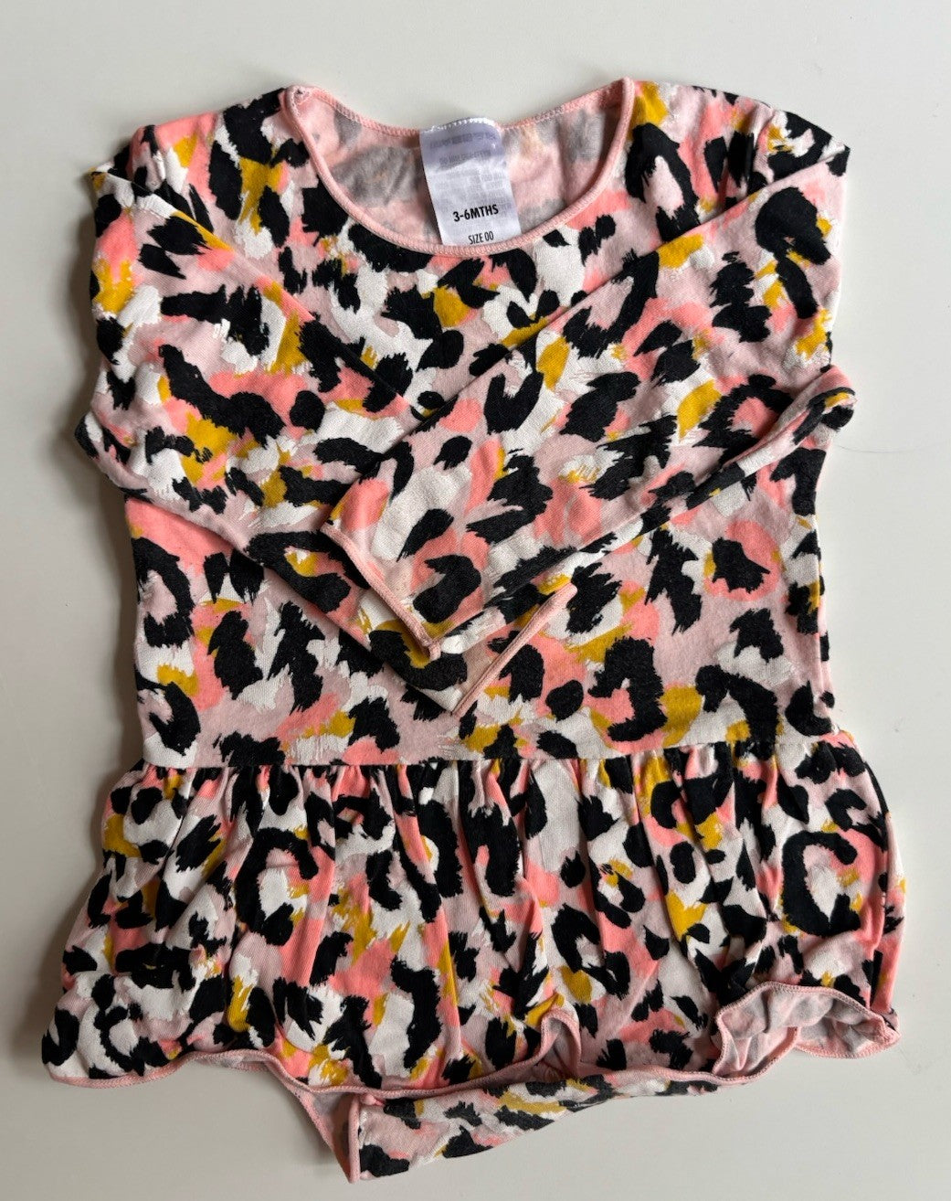 Bonds baby girl size 3-6 months pink black leopard print bodysuit dress, VGUC