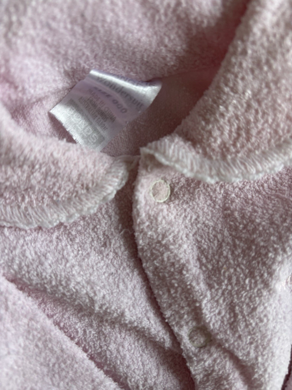 Bonds baby girl size 0-3 months pink Terry towelling wondersuit collar, VGUC
