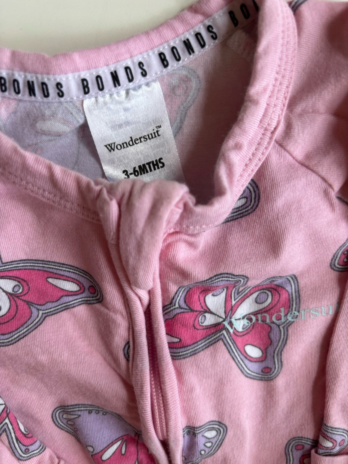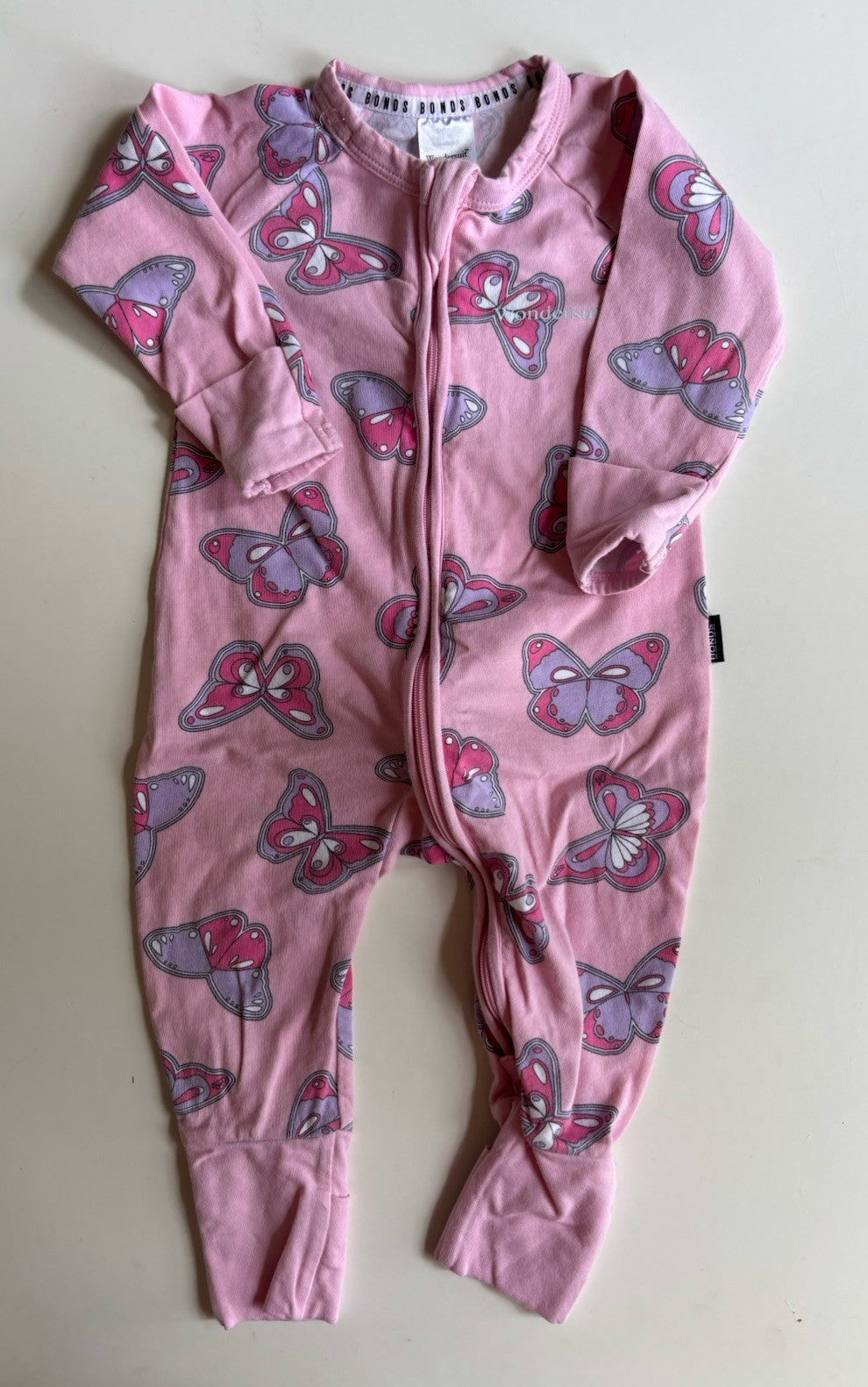 Bonds baby girl size 3-6 months zippy wondersuit pink butterflies, VGUC