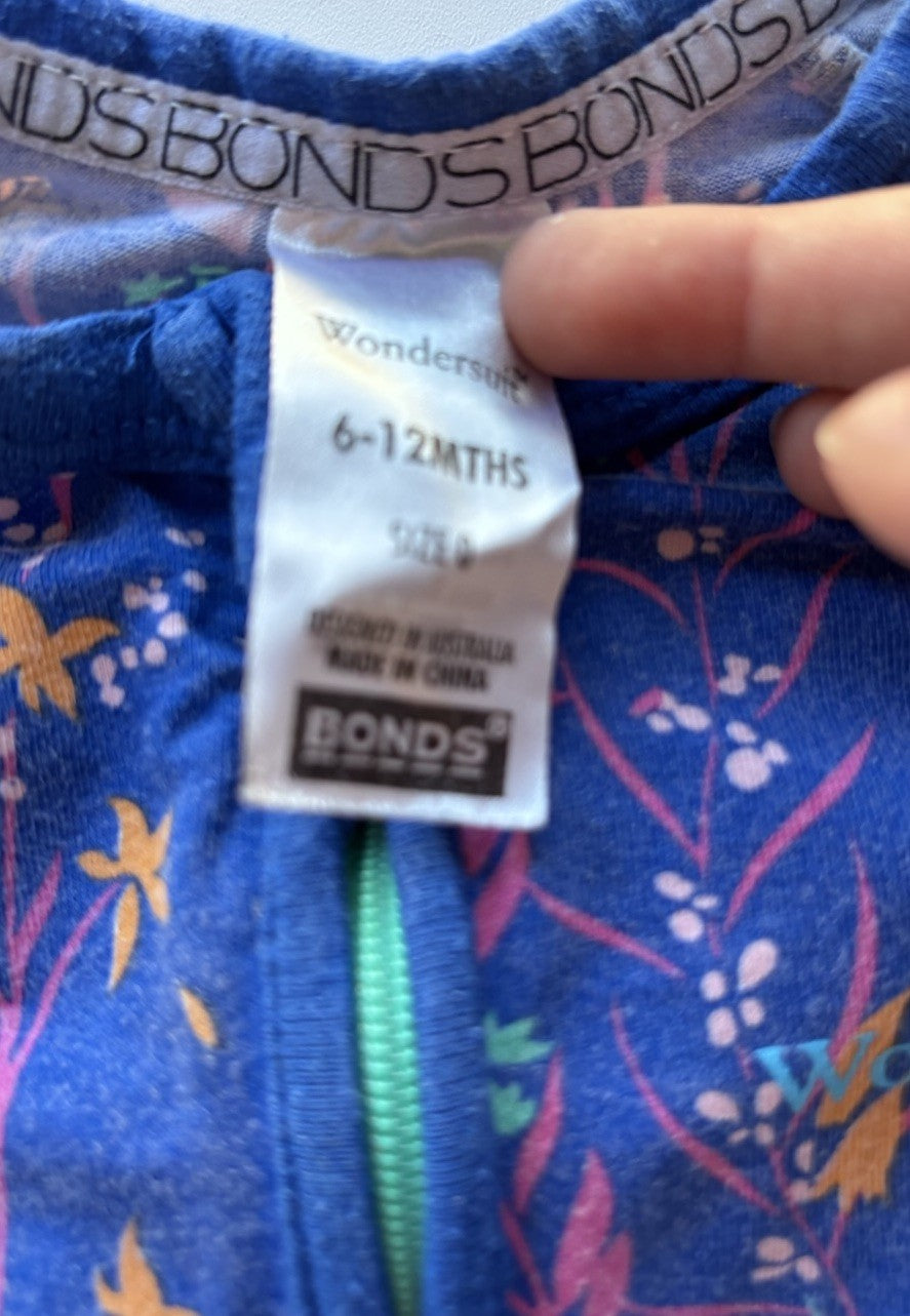 Bonds baby girl size 6-12 months zippy wondersuit blue colourful flora