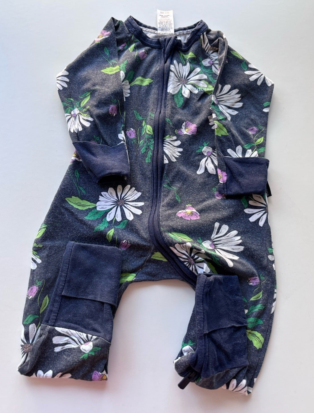 Bonds baby girl size 6-12 months zippy wondersuit navy blue purple flo