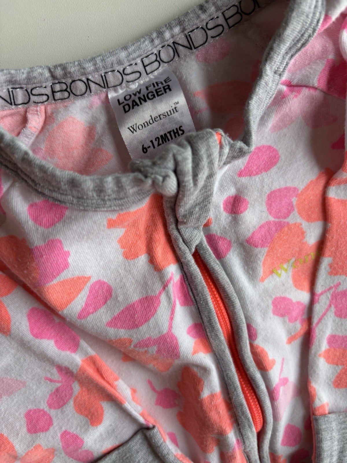 Bonds baby girl size 6-12 months zippy wondersuit pink orange floral,