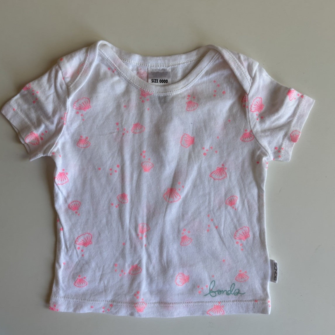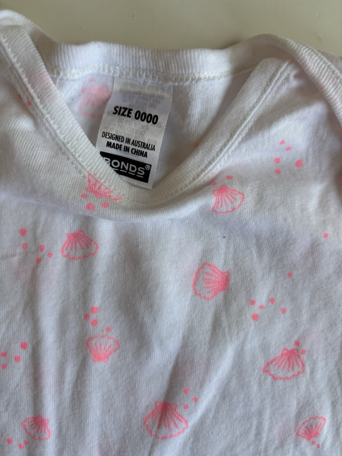 Bonds baby girl size newborn white pink shells t-shirt, VGUC