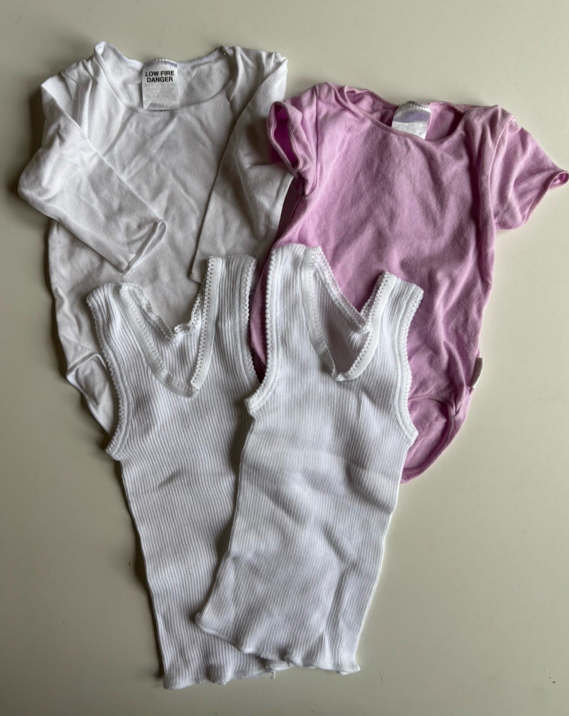 Bonds baby girl size newborn white purple tops singlets bundle, VGUC