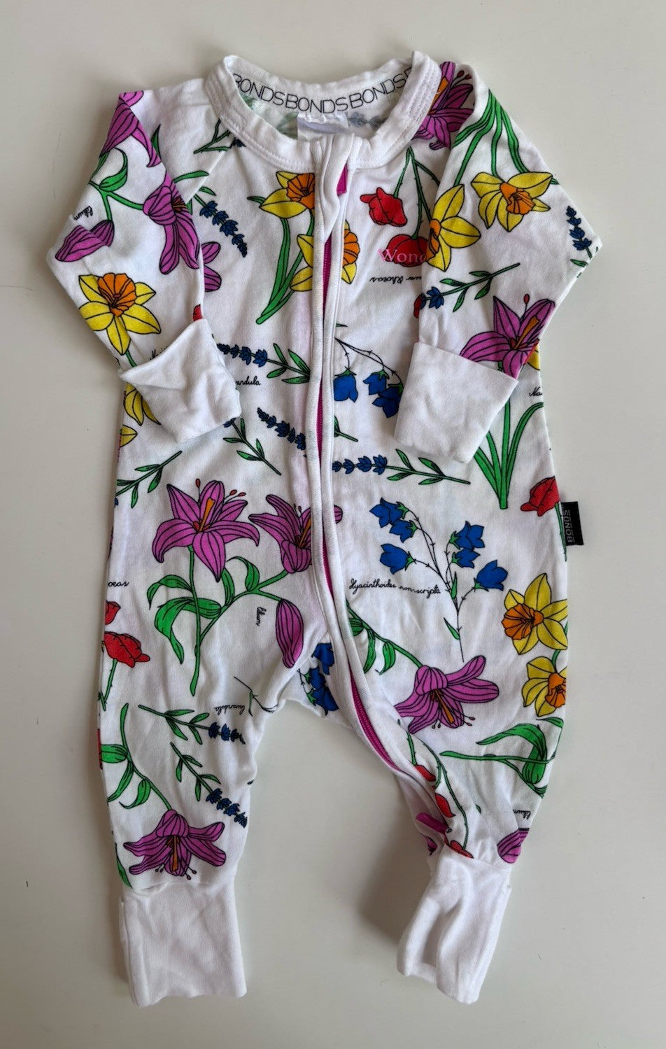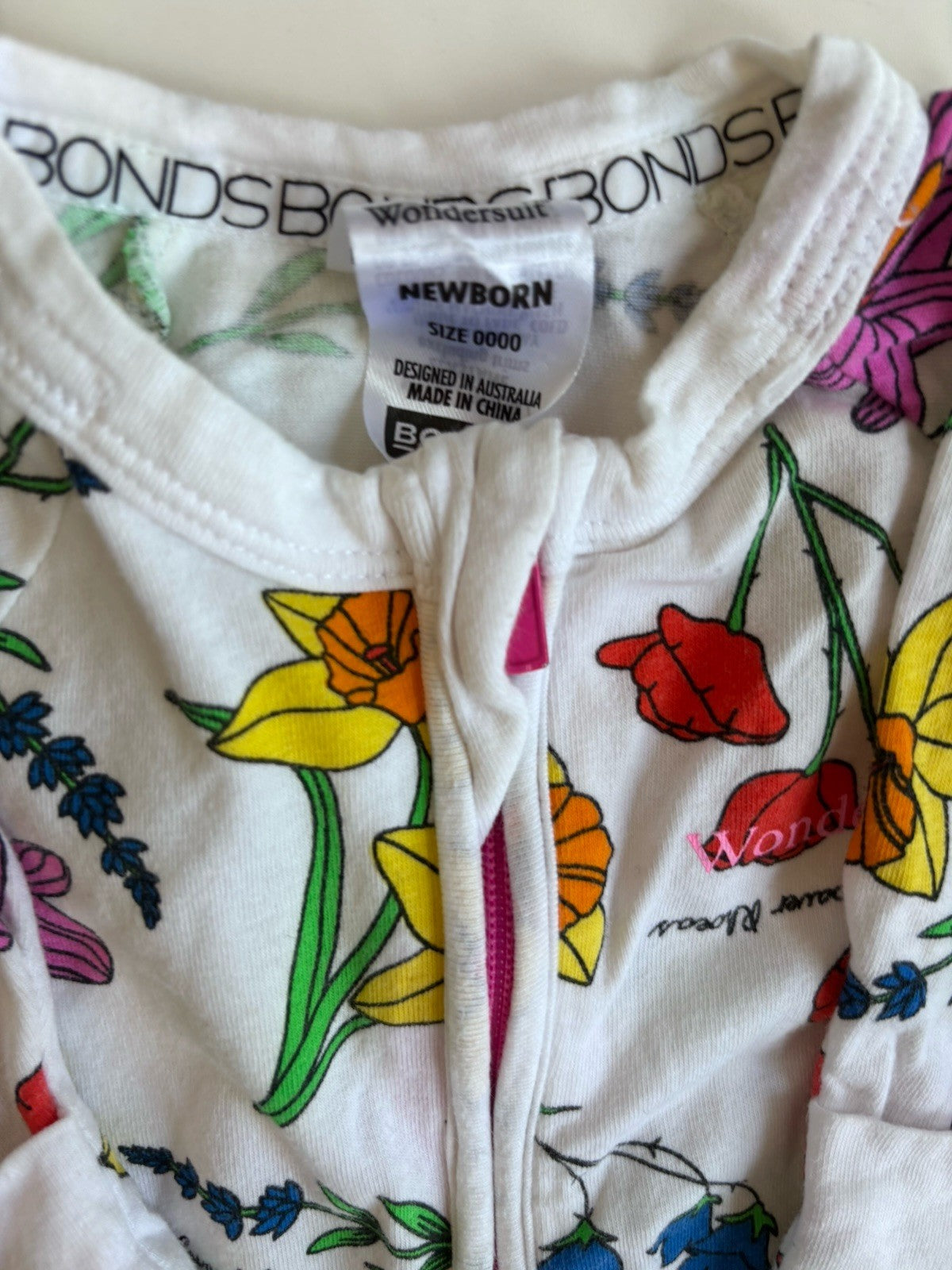 Bonds baby girl size newborn zippy wondersuit white colourful floral,