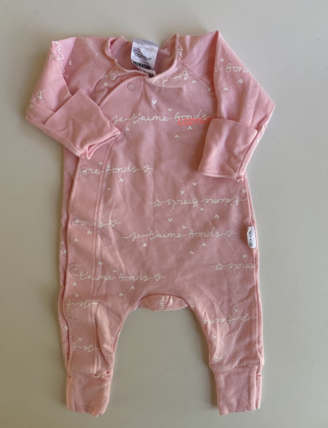 Bonds baby girl size premature pink wrap cozysuit one-piece, VGUC