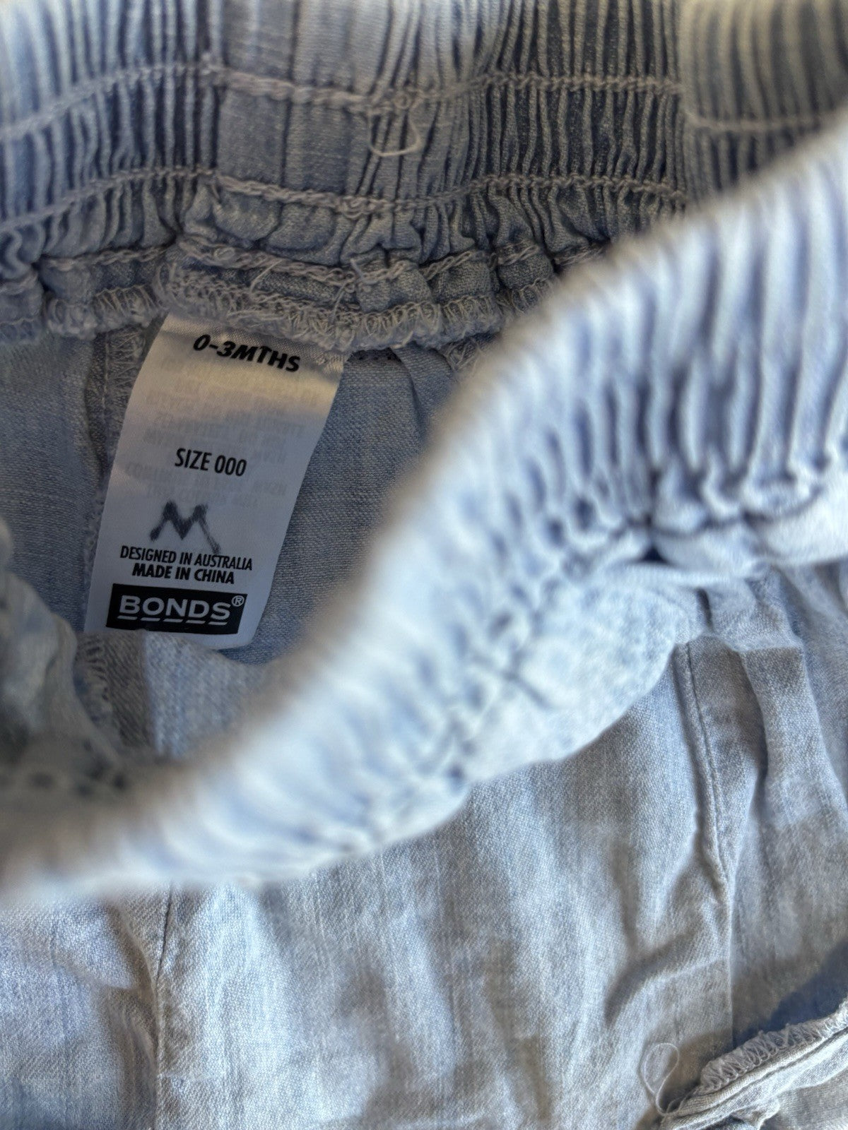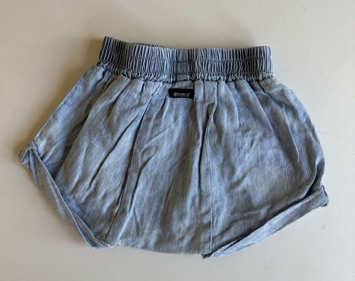 Bonds baby size 0-3 months blue chambre denim shorts, VGUC