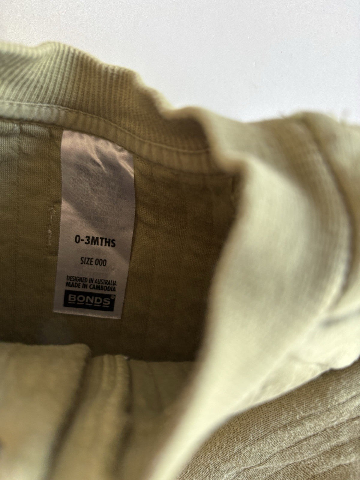 Bonds baby size 0-3 months green quilted one-piece, VGUC
