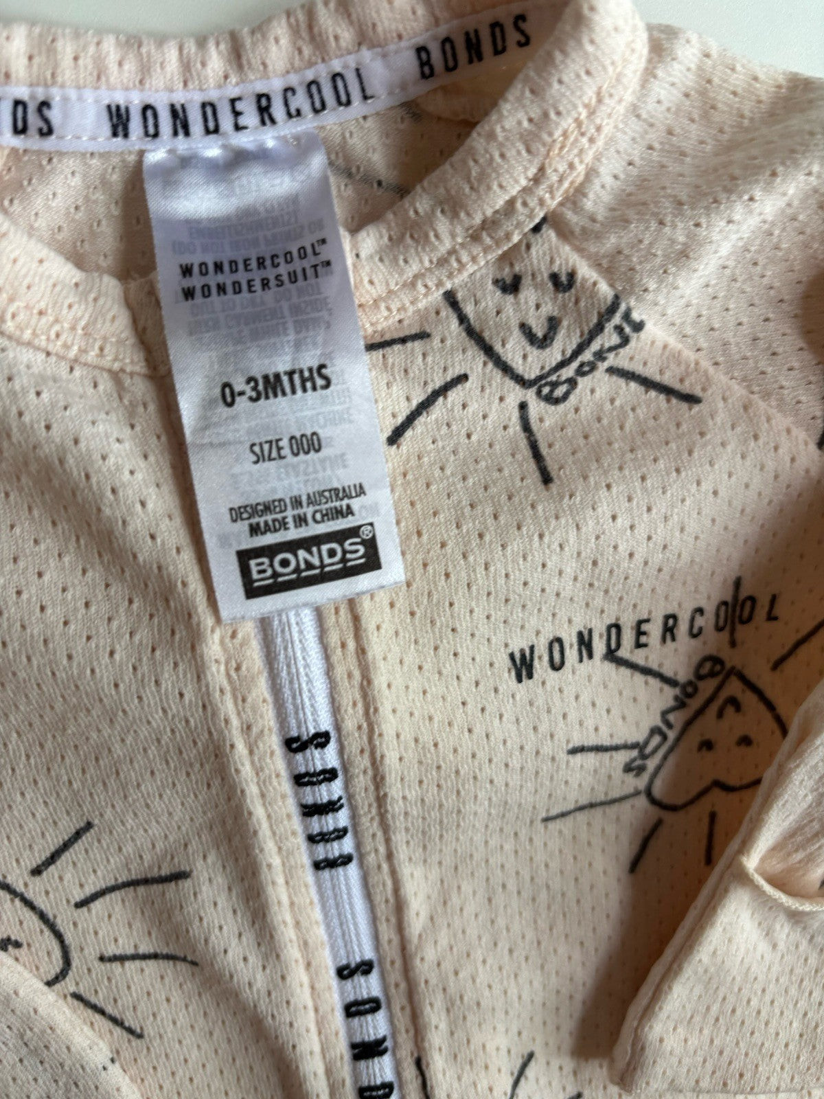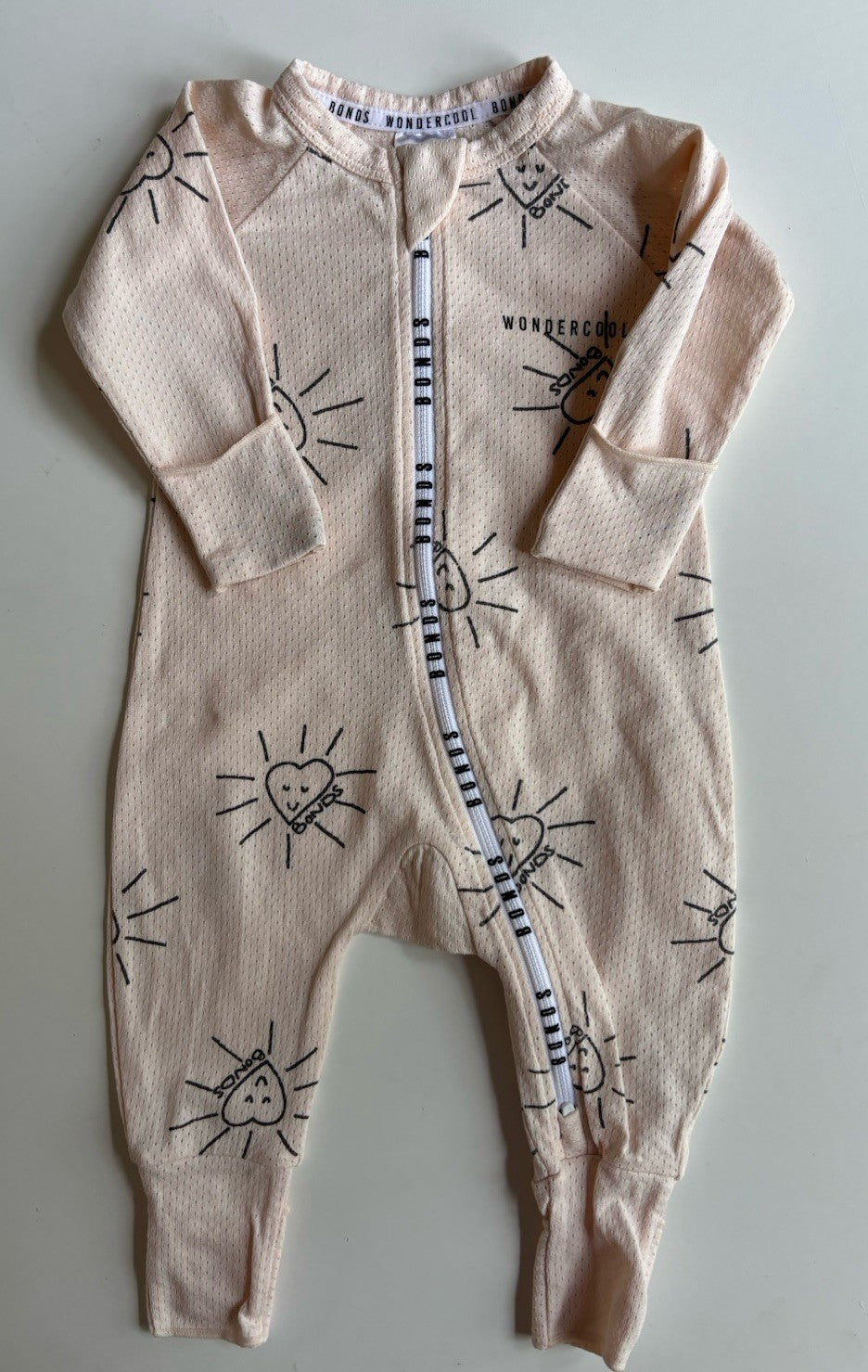 Bonds baby size 0-3 months zippy wondercool wondersuit beige hearts, E
