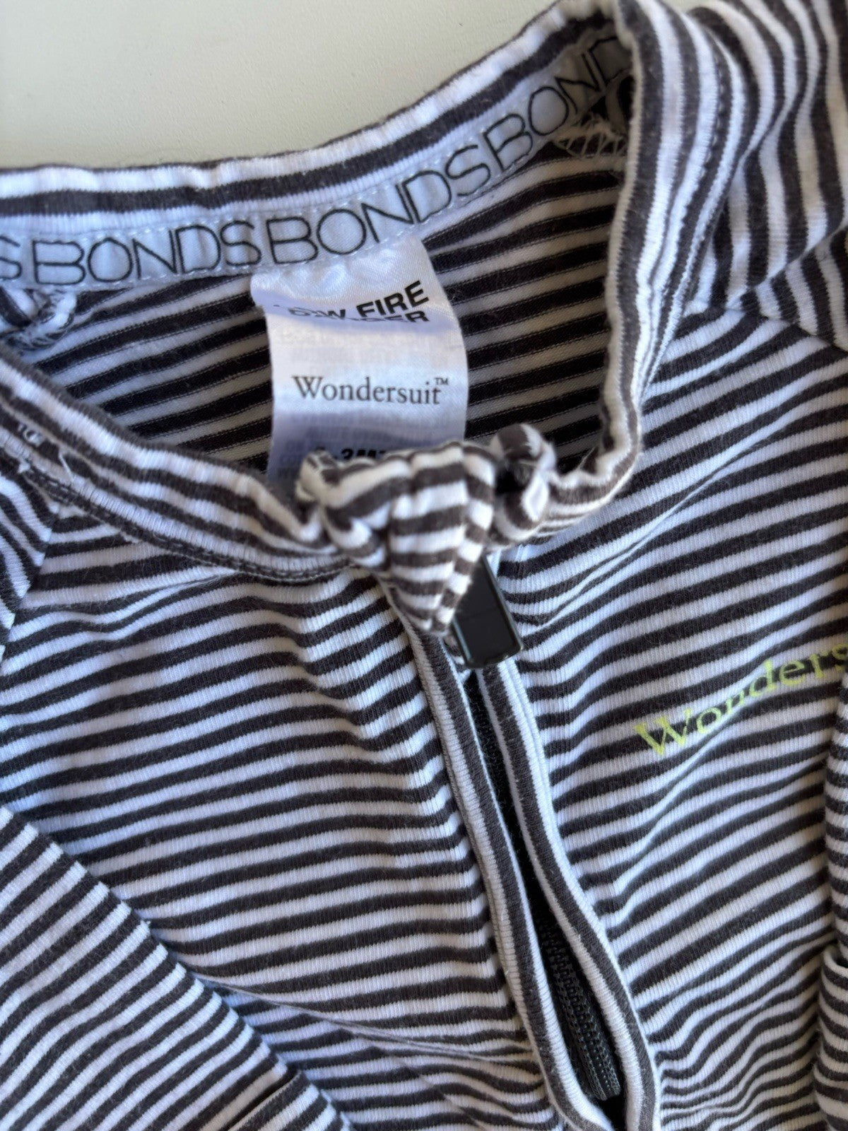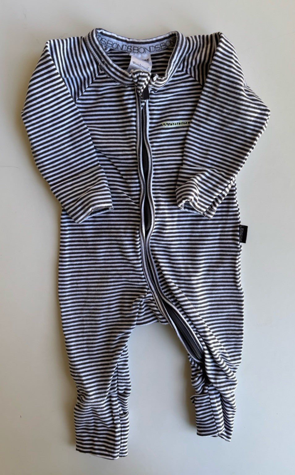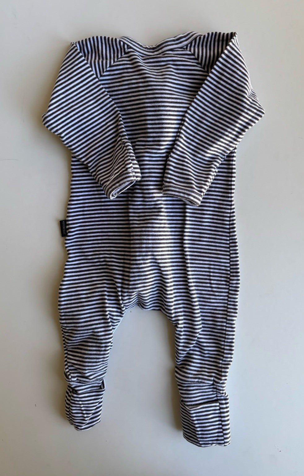 Bonds baby size 0-3 months zippy wondersuit dark grey stripe, VGUC