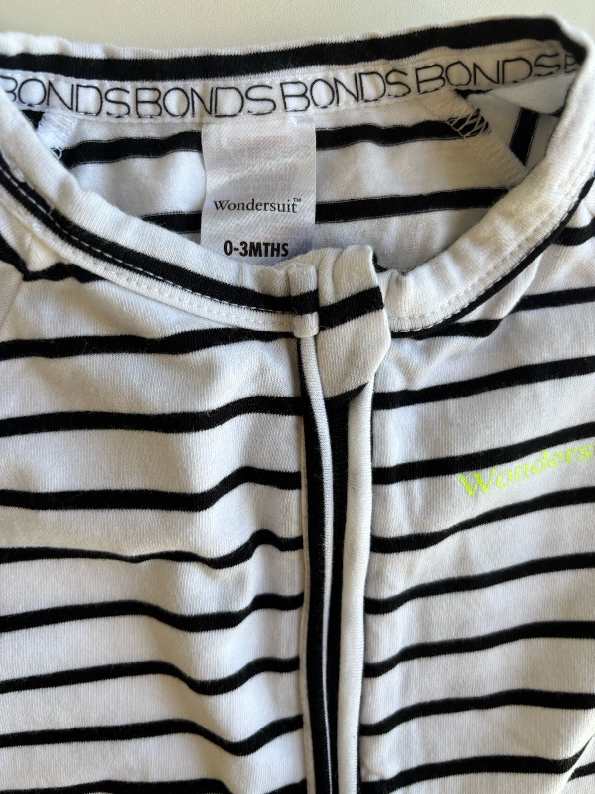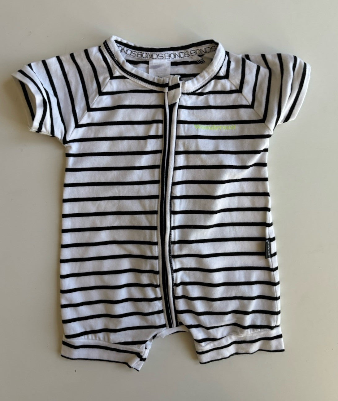 Bonds baby size 0-3 months zippy wondersuit romper black stripe, VGUC