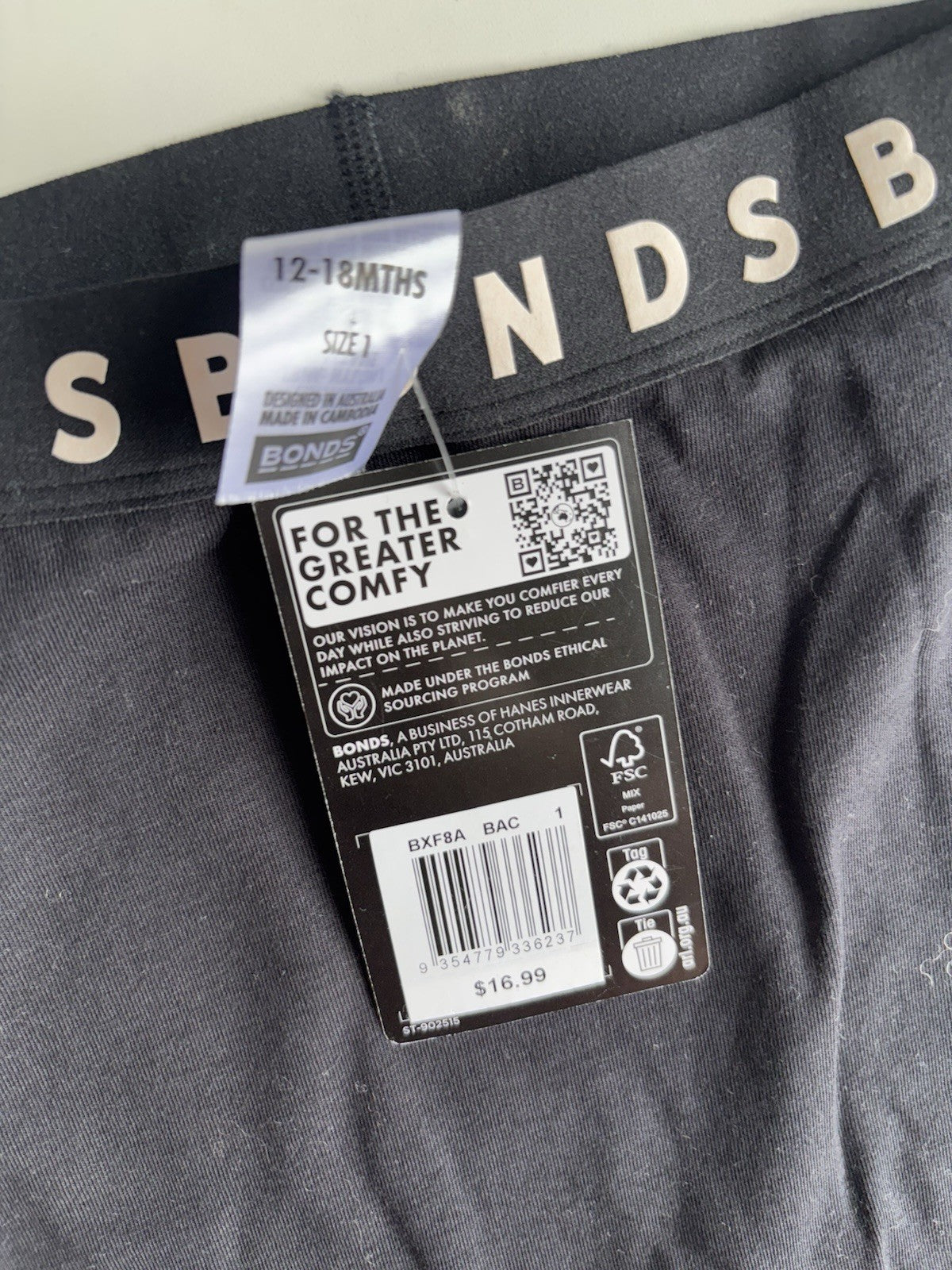 Bonds baby size 12-18 months black stretch leggings pants, BNWT