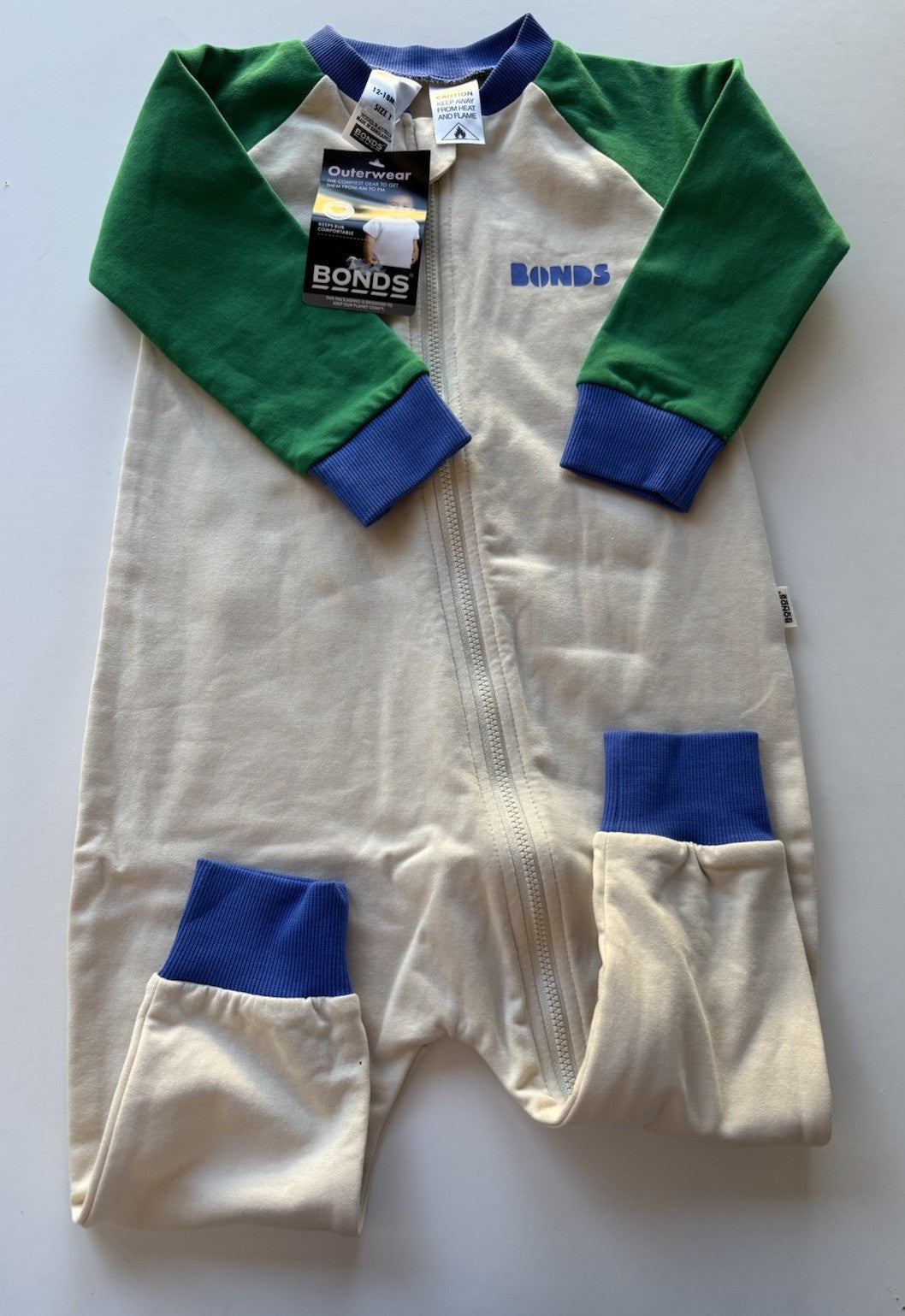Bonds baby size 12-18 months green blue beige fleecy one-piece zip, BNWT
