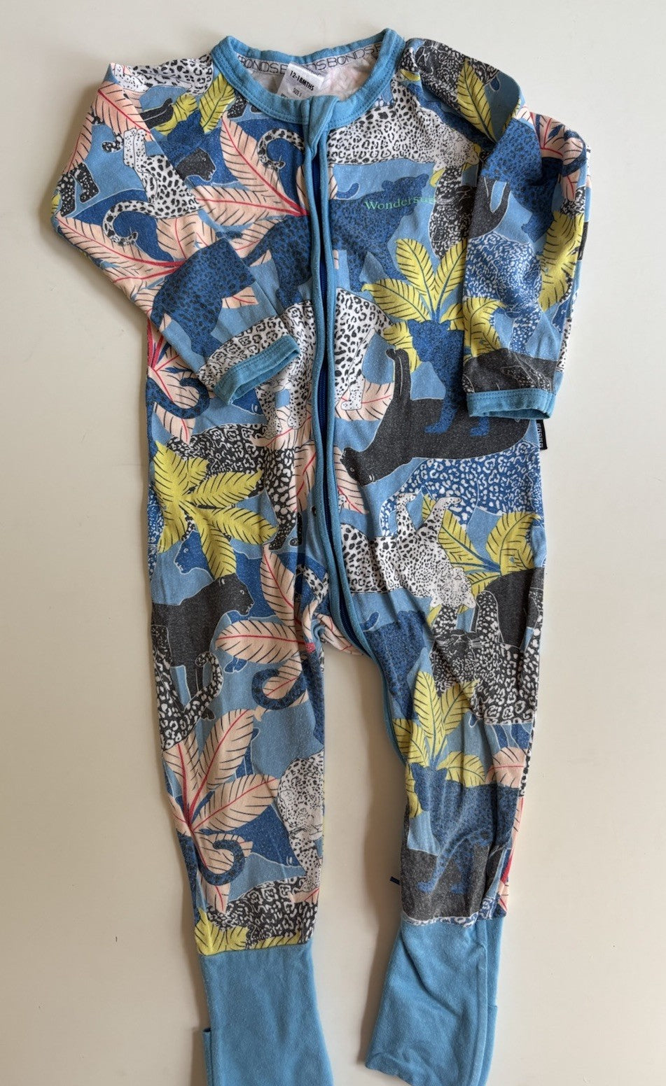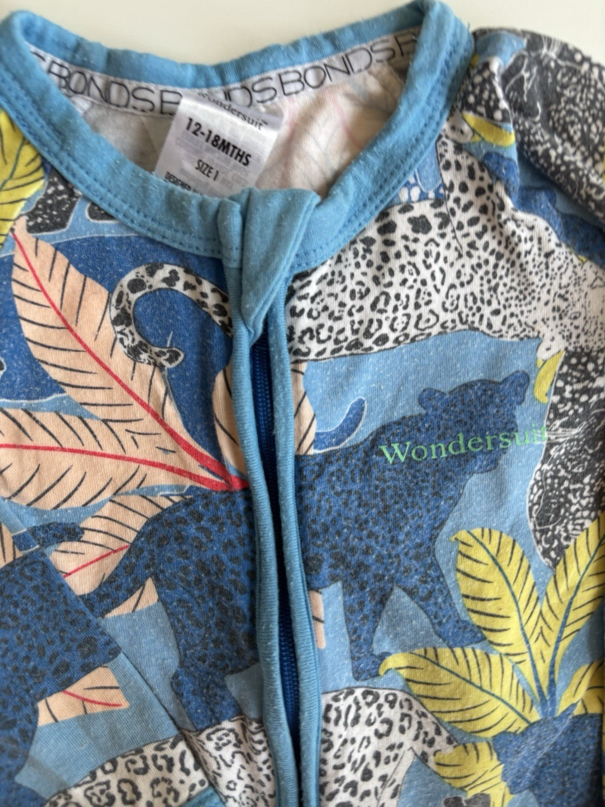 Bonds baby size 12-18 months zippy wondersuit blue jungle animals, GUC