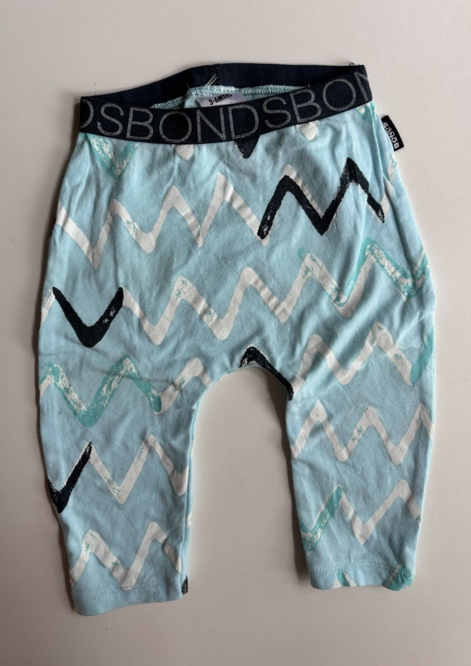 Bonds baby size 3-6 months blue white zig zag leggings pants, VGUC