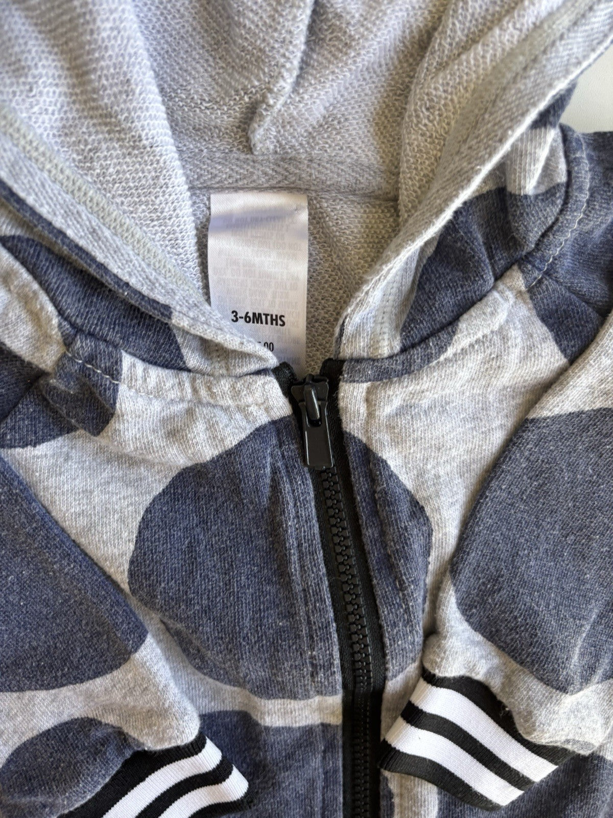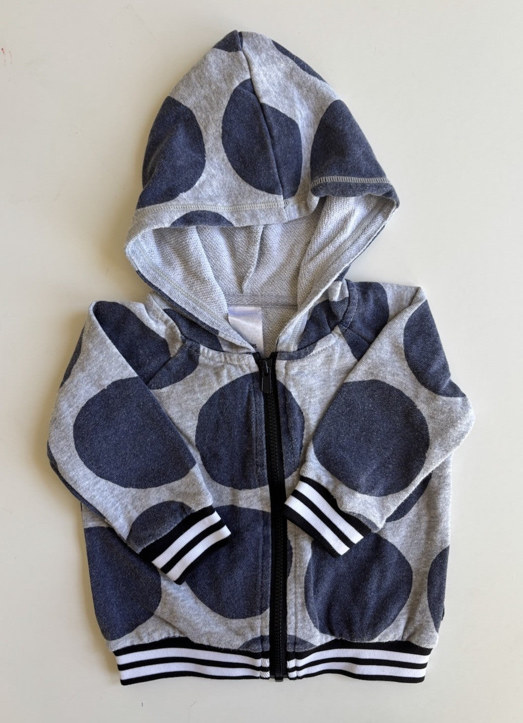 Bonds baby size 3-6 months grey blue spot hooded zip up jumper, VGUC