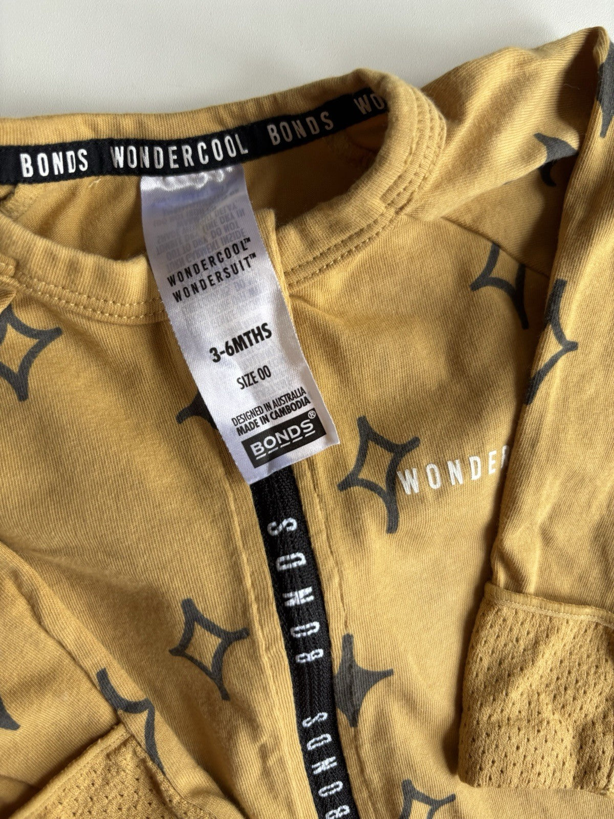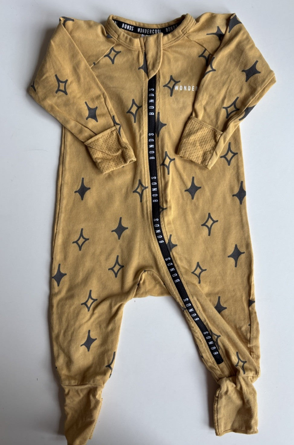 Bonds baby size 3-6 months zippy wondercool brown black stars, VGUC
