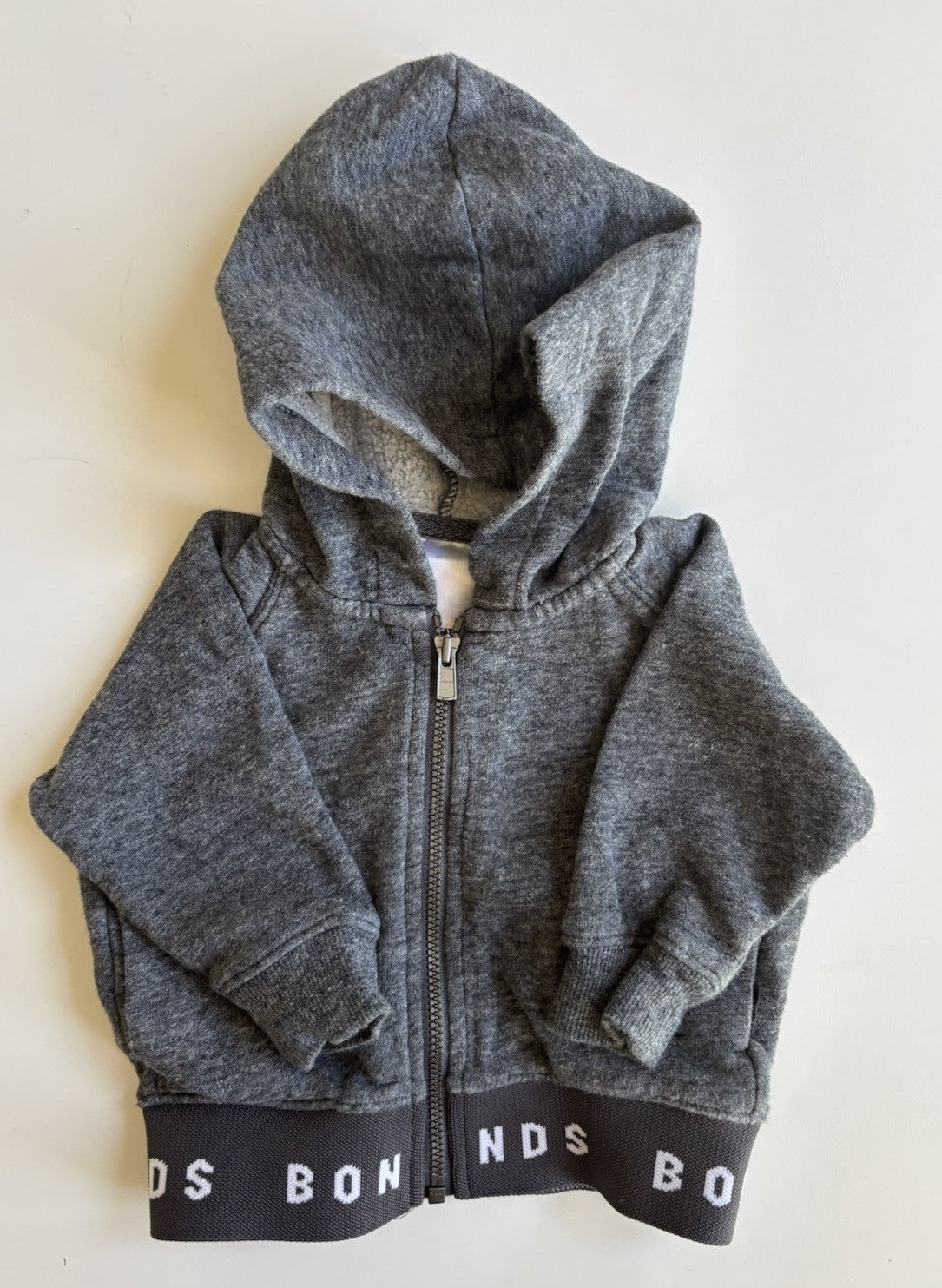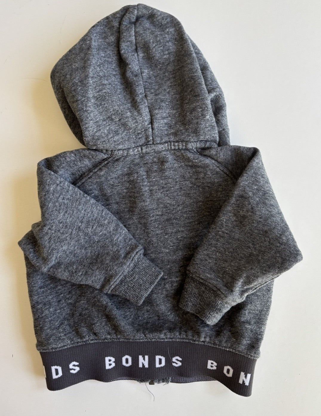 Bonds baby size 3-6 months dark grey marle hooded zip up jumper, VGUC