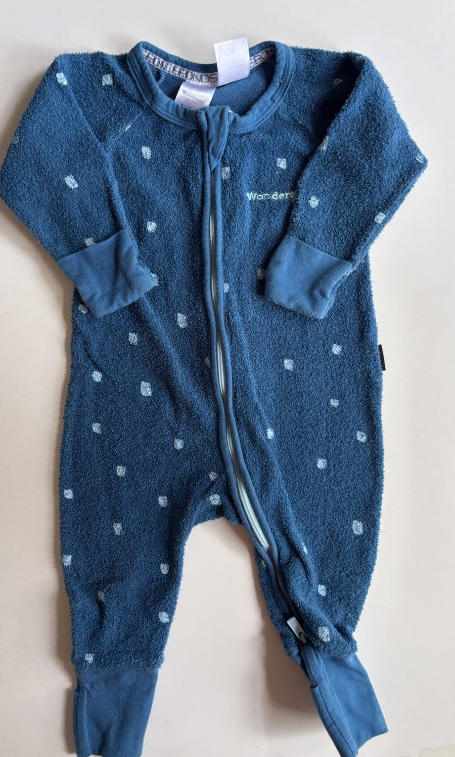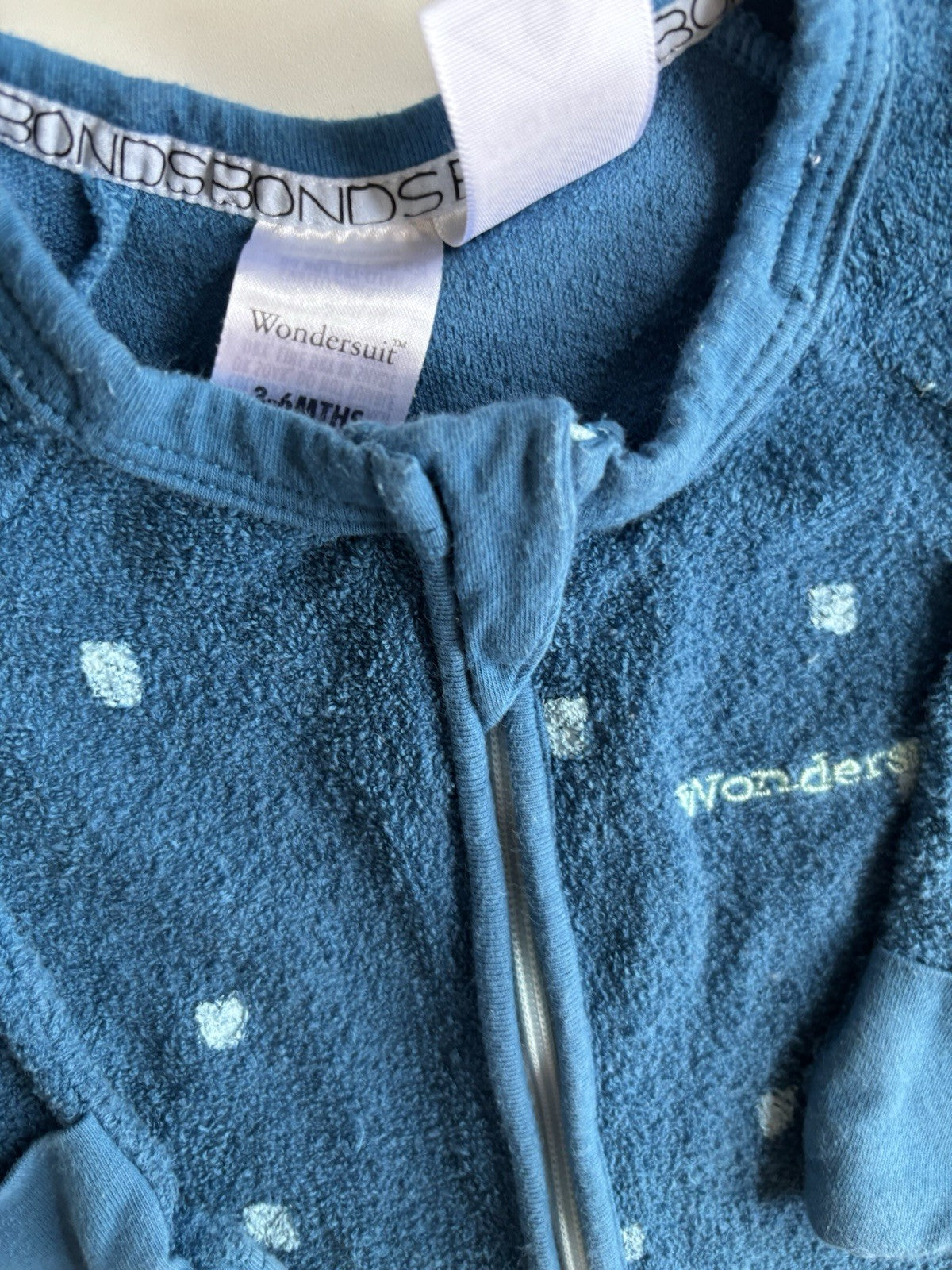 Bonds baby size 3-6 months zippy wondersuit green blue spot Terry towe