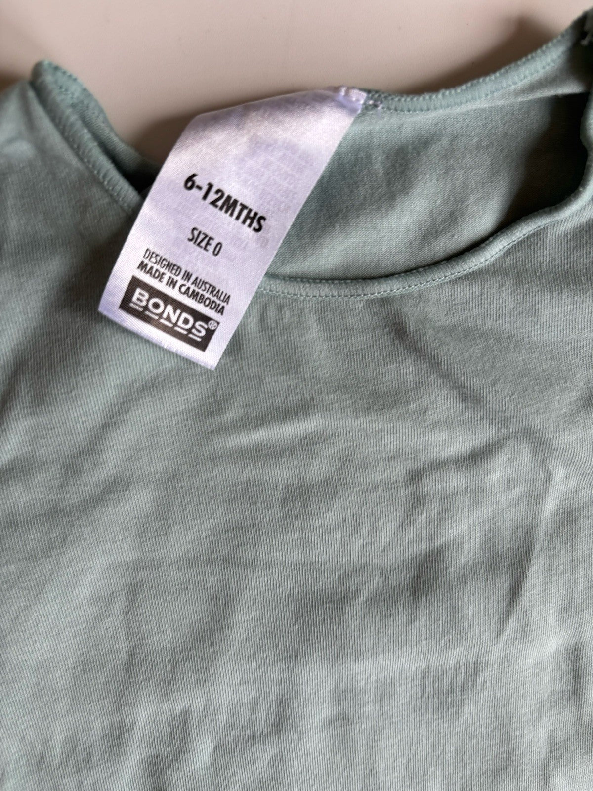Bonds baby size 6-12 months sage green t-shirt bodysuit, VGUC