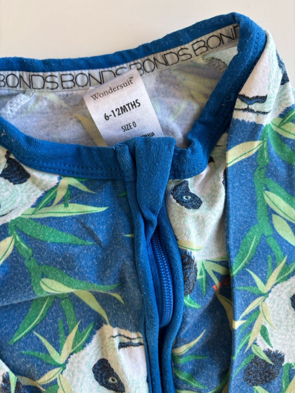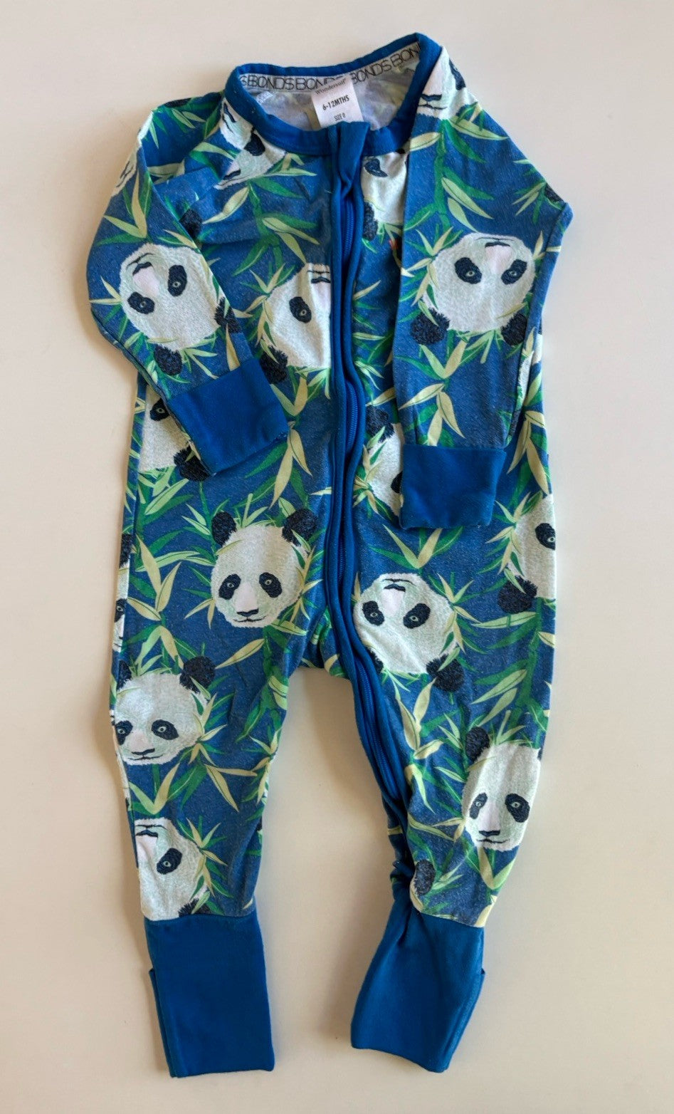 Bonds baby size 6-12 months zippy wondersuit blue pandas, GUC