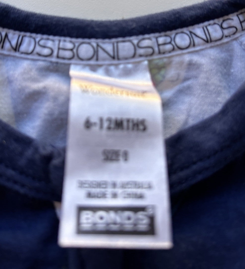 Bonds baby size 6-12 months zippy wondersuit navy blue sushi, VGUC